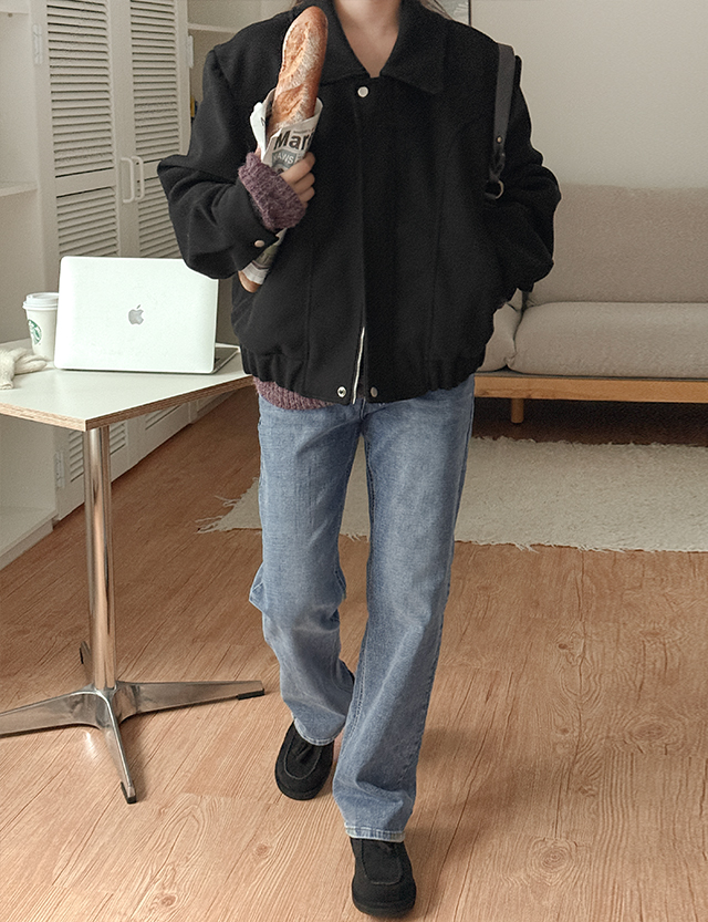 • 리셀 寬鬆 加絨 블루종 拉鏈外套 84485