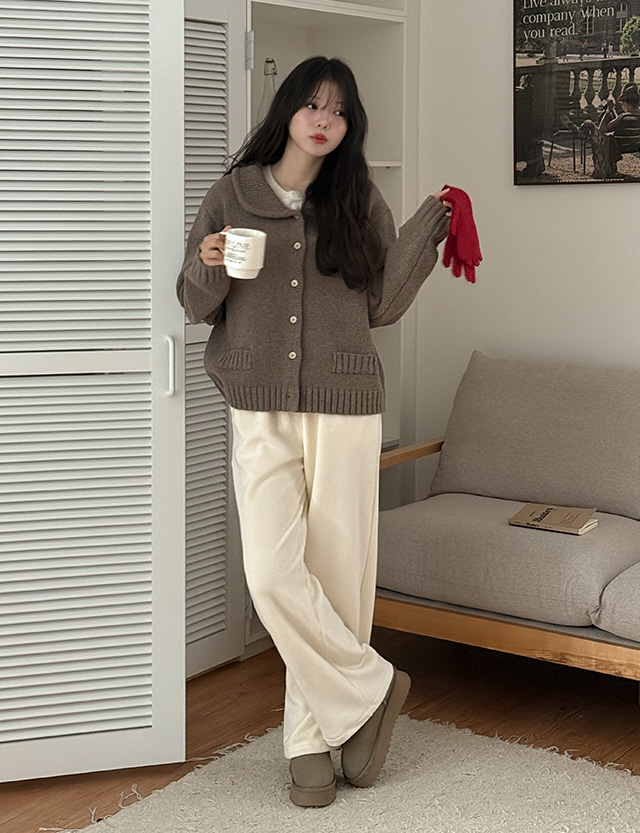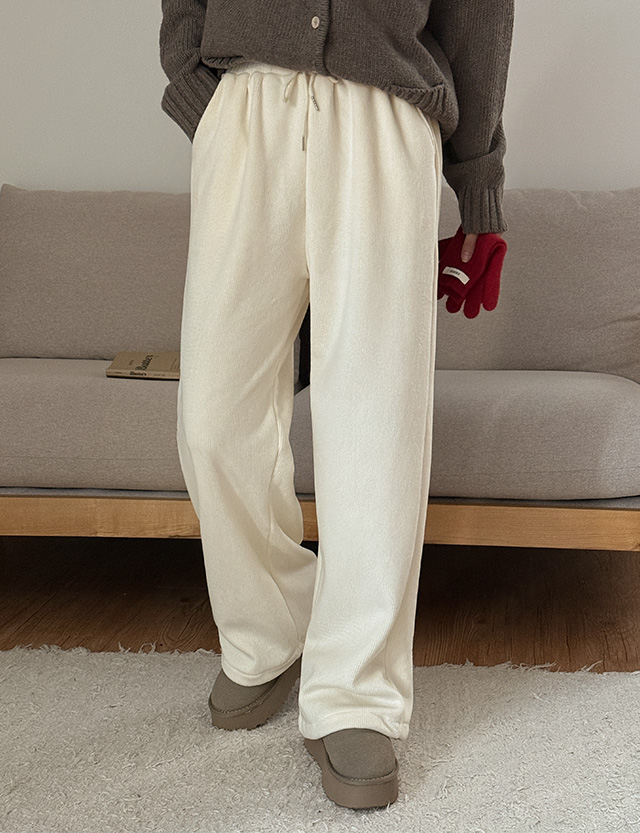 포근하고 따뜻한 착용감을 느낄 수 있는 조거 와이드 팬츠예요.