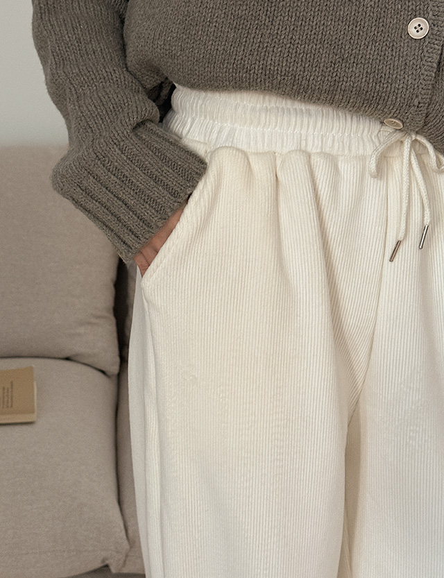따뜻한 무드의 코듀로이 조거 와이드 팬츠