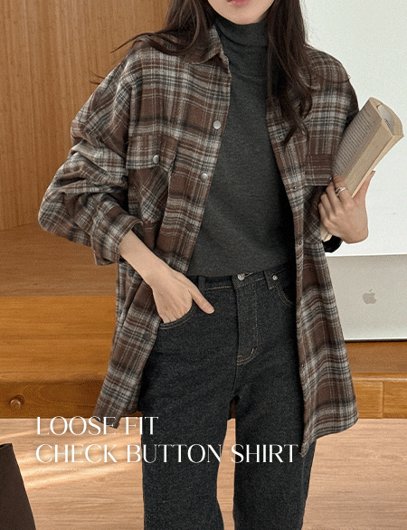 [09초이스] 수납짱 투포켓 寬鬆 格紋 鈕扣 襯衫 外套 84595