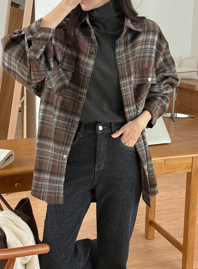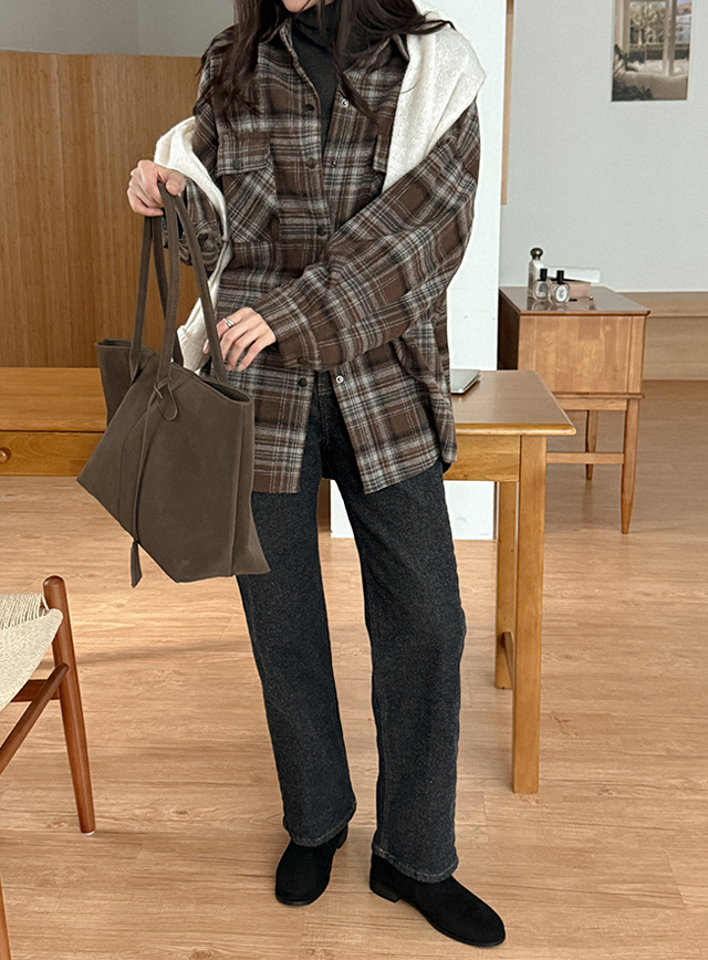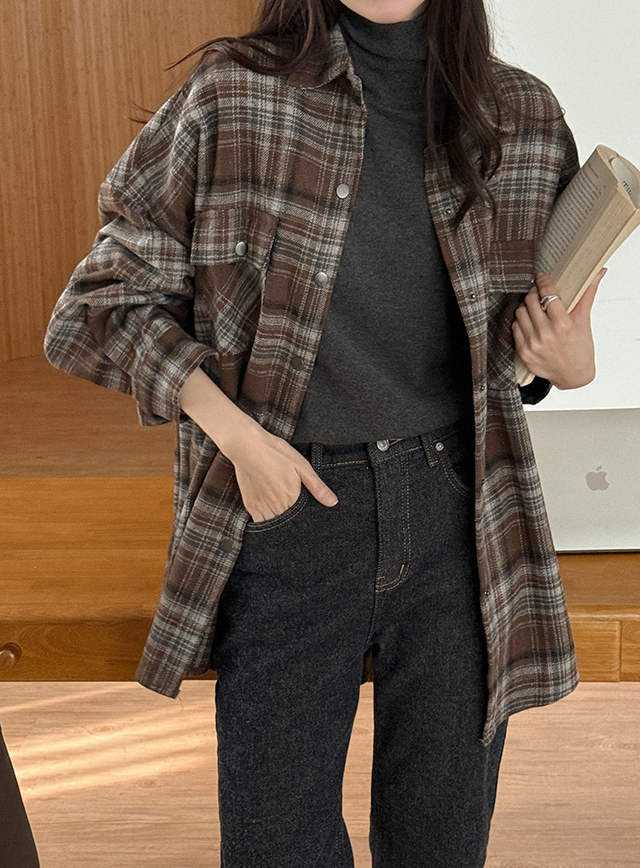 [09초이스] 수납짱 투포켓 寬鬆 格紋 鈕扣 襯衫 外套 84595