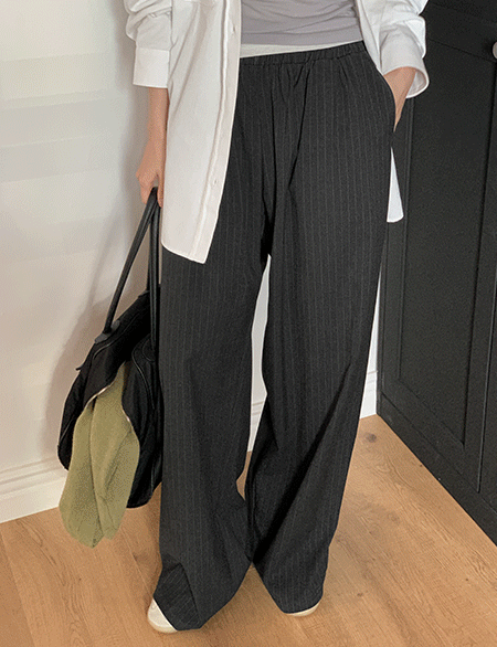 • 아넨티 鬆緊腰 寬 條紋 休閒長褲 84578