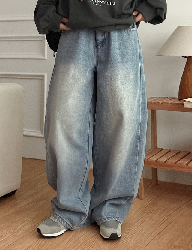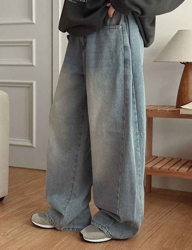 에소 水洗 사이드 褶皺 寬 牛仔 褲 84481
