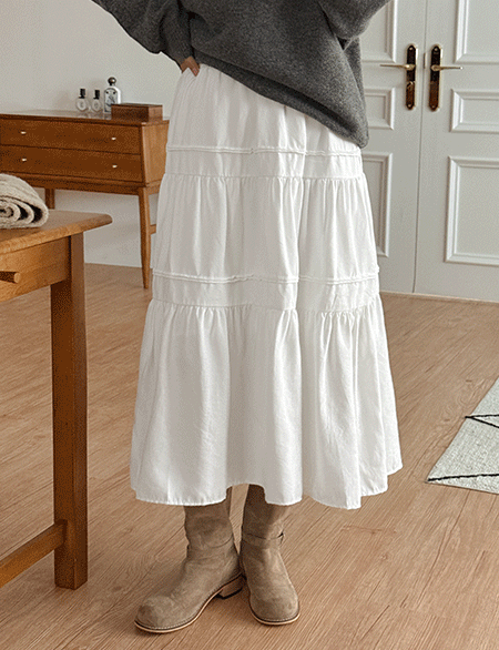 체피 桃色 荷葉裙 鬆緊腰 長裙 84556