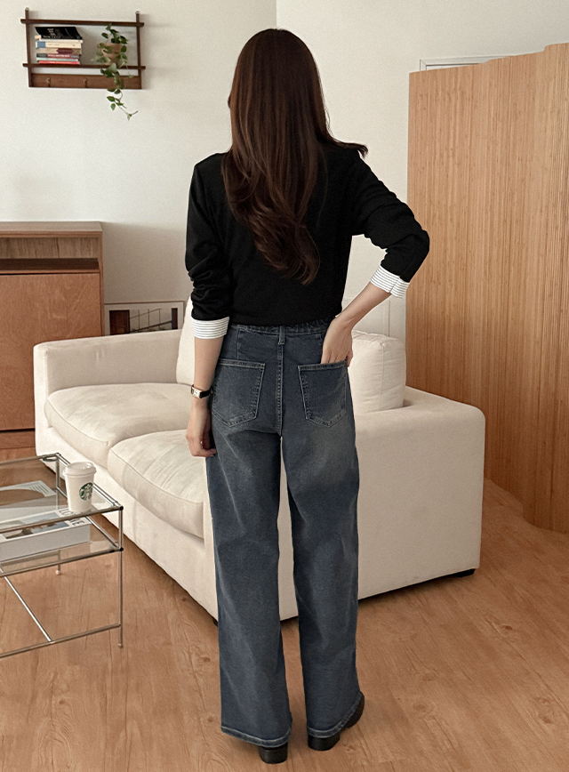 [3가지 全長] 벨로 寬 牛仔 褲 84532