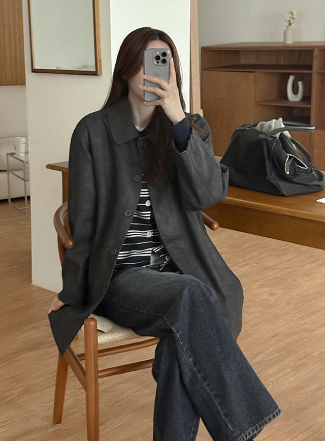 로브닉 매트 레더 短版 外套 84502