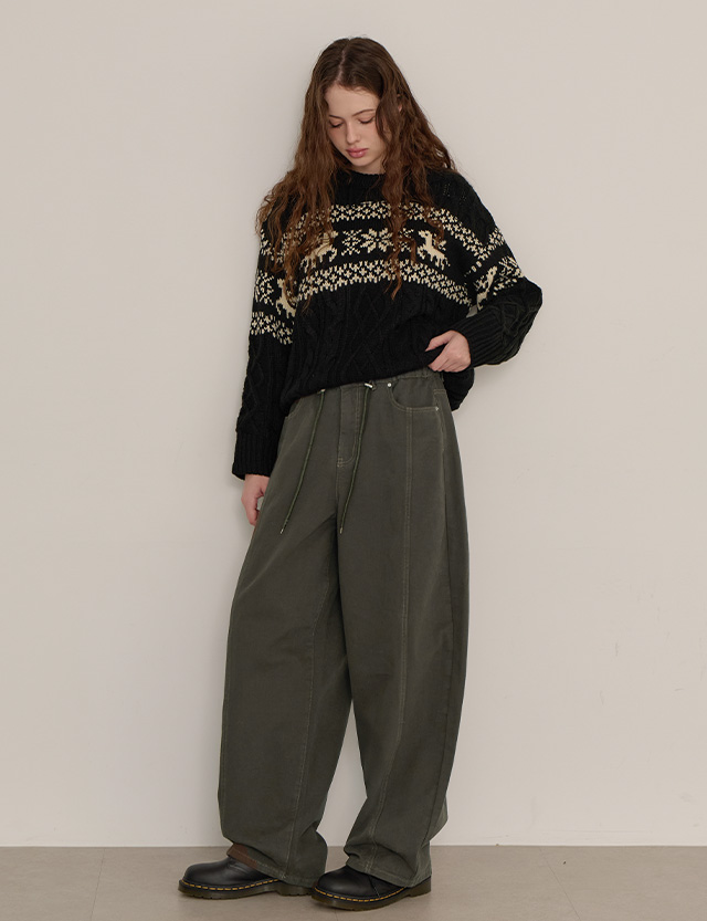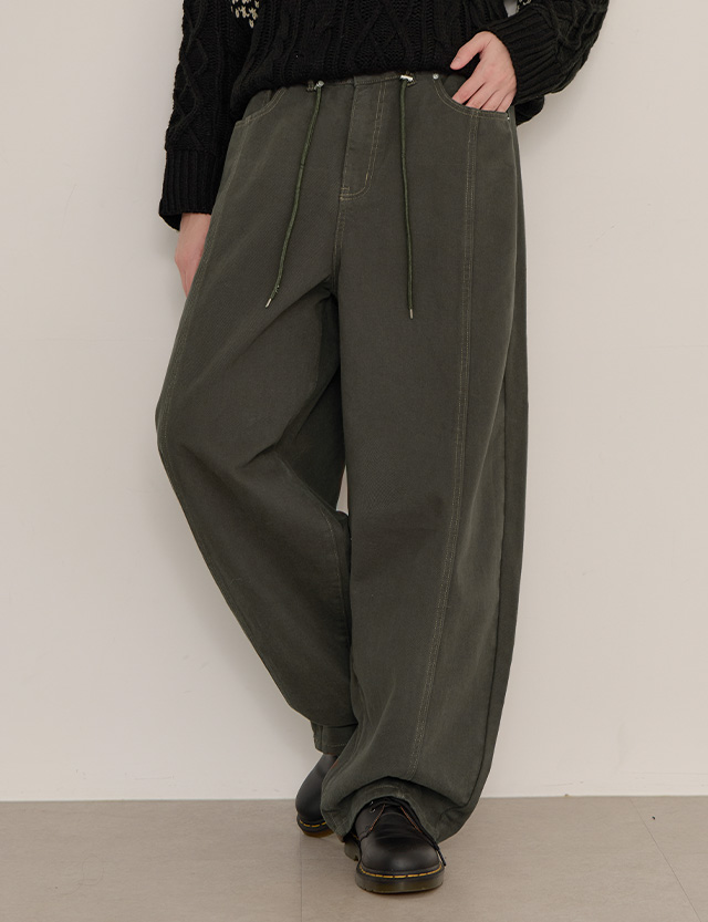 워크 로우 加絨 蓬蓬裙 커브드 鬆緊腰 褲 85009