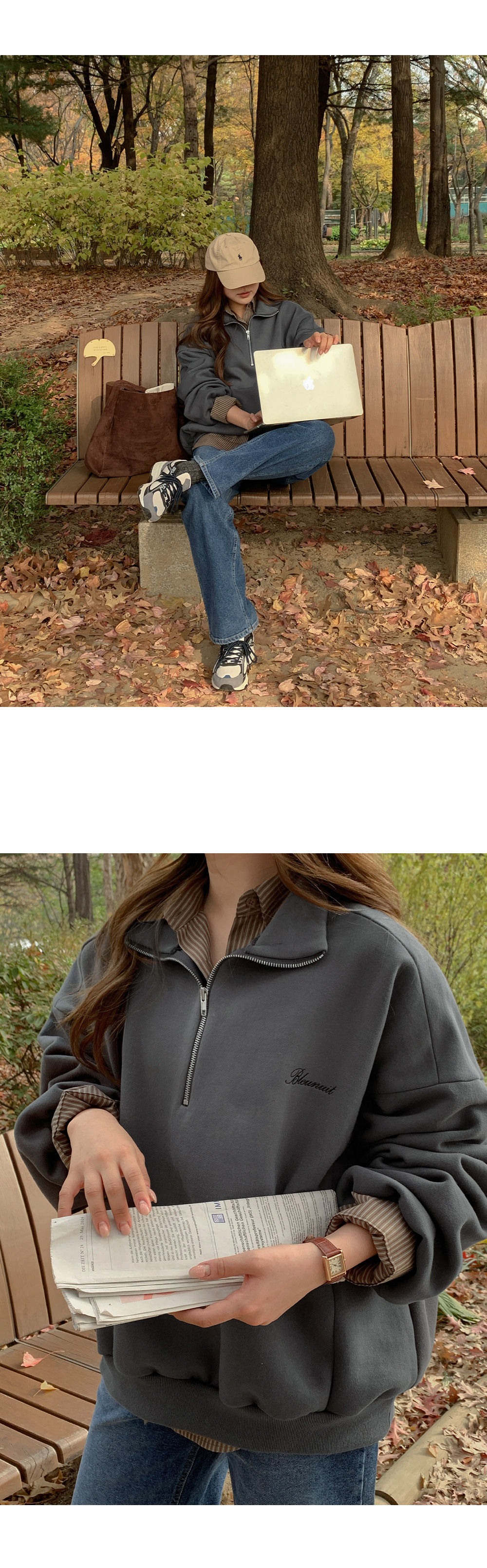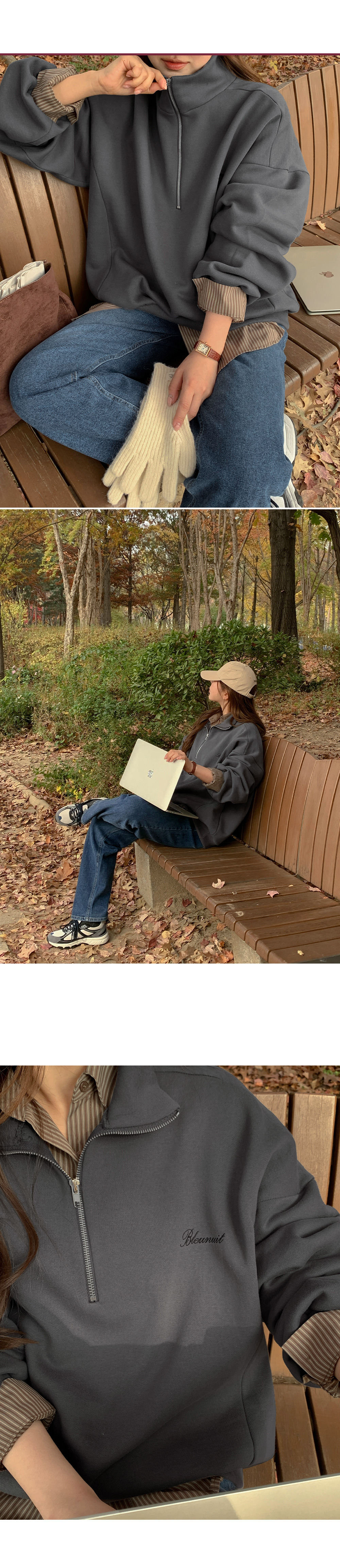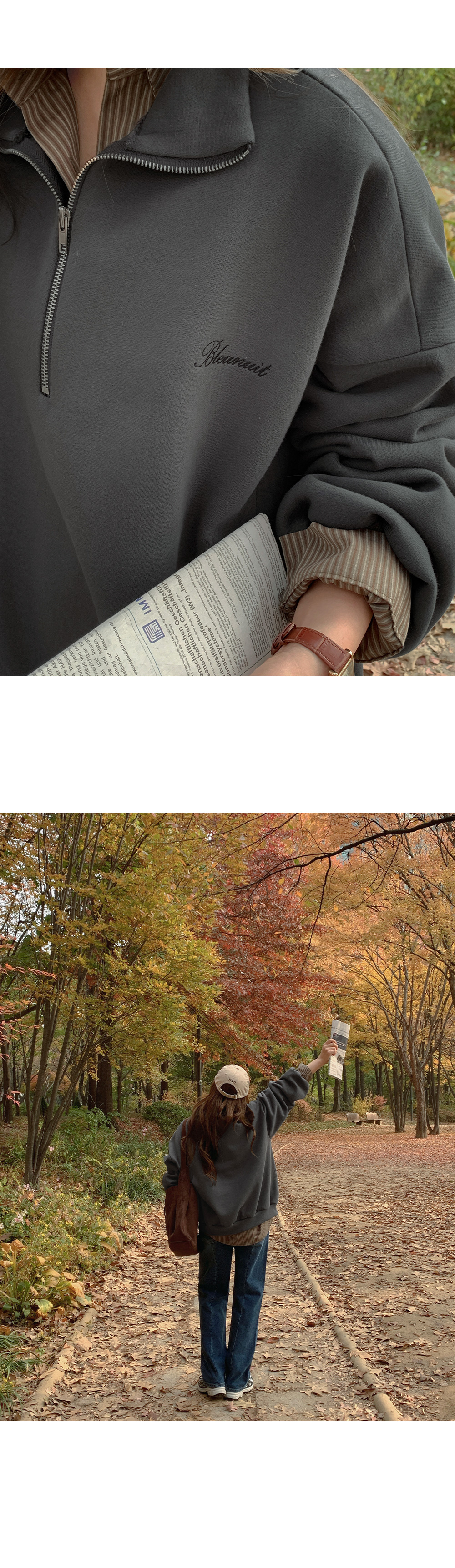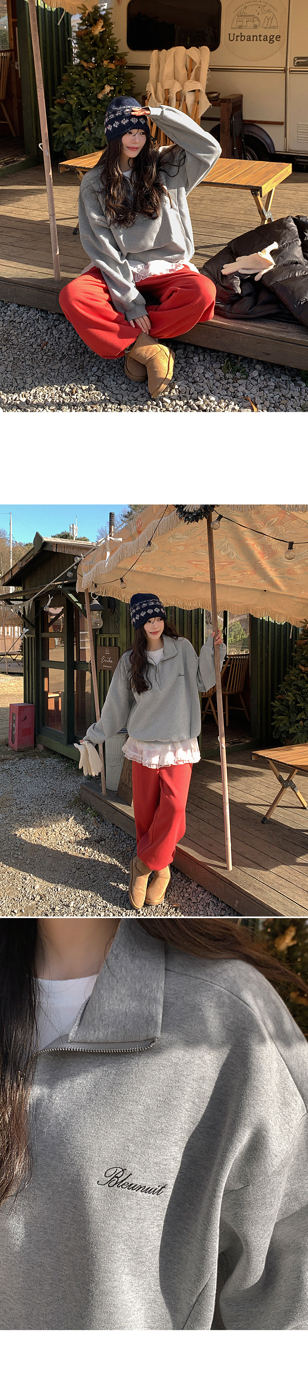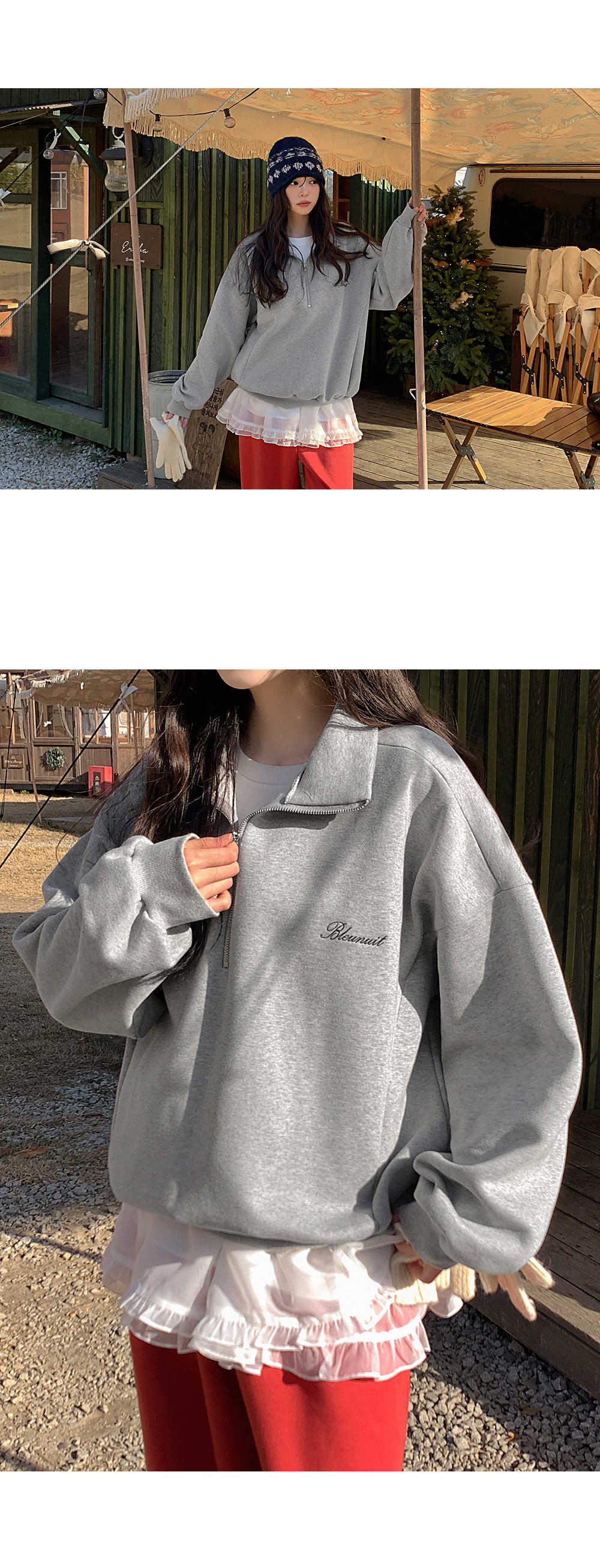 블루닛 刺繡 半拉鏈 加絨 寬鬆 運動衫 85066