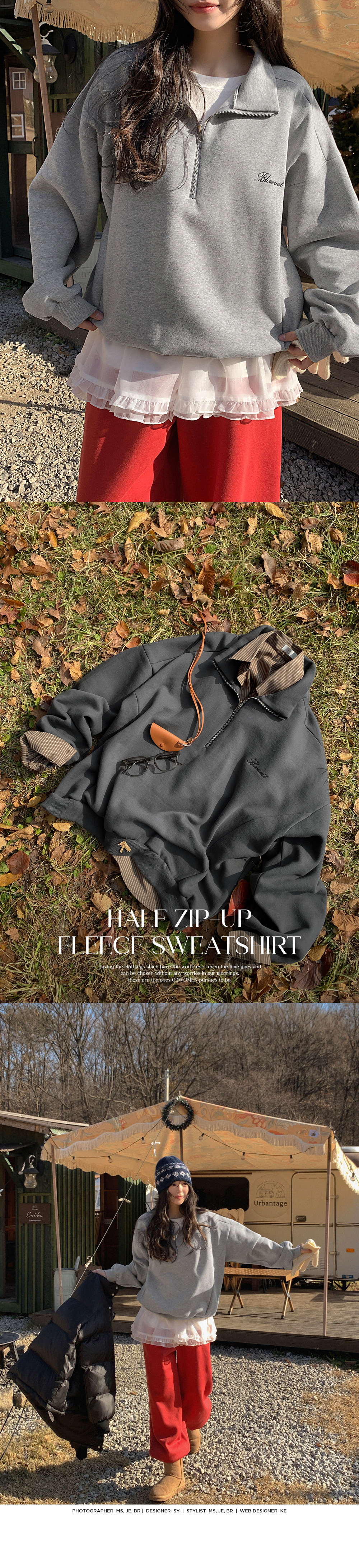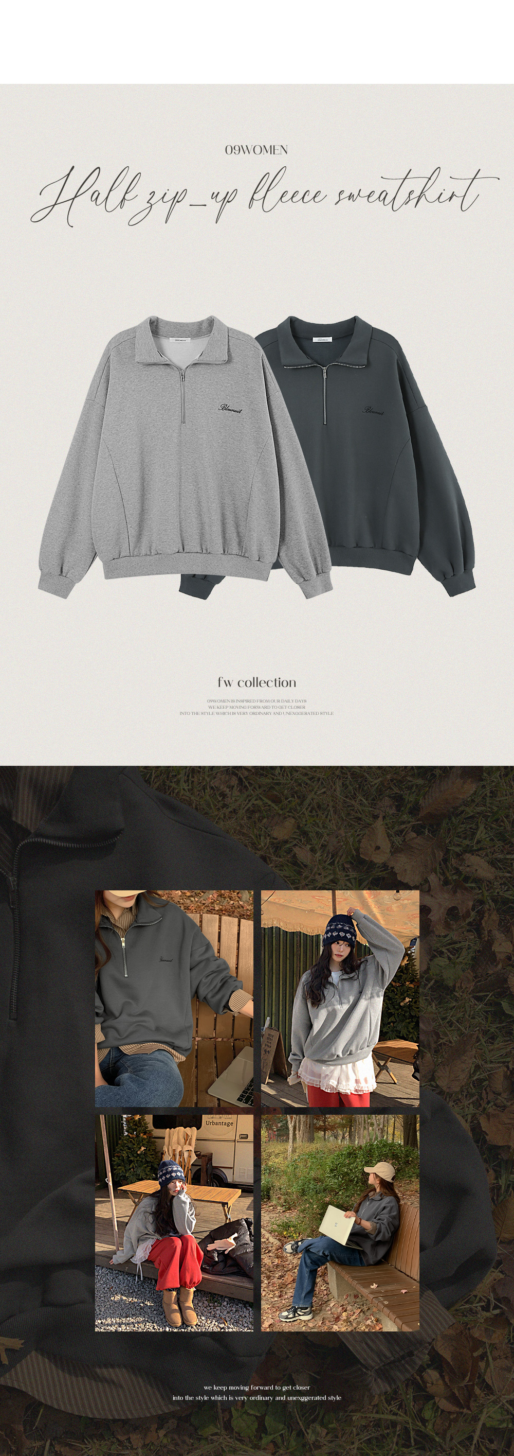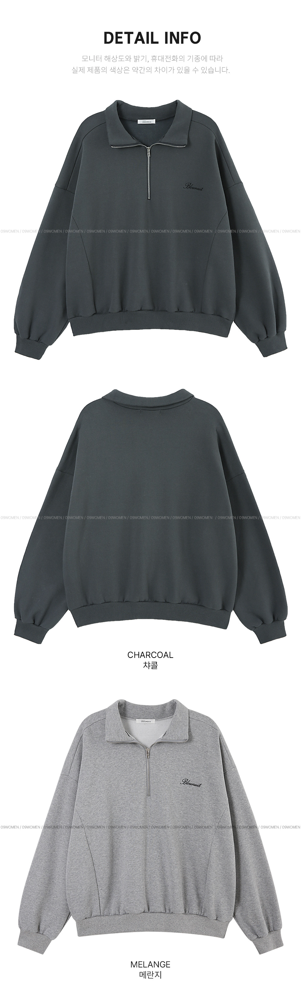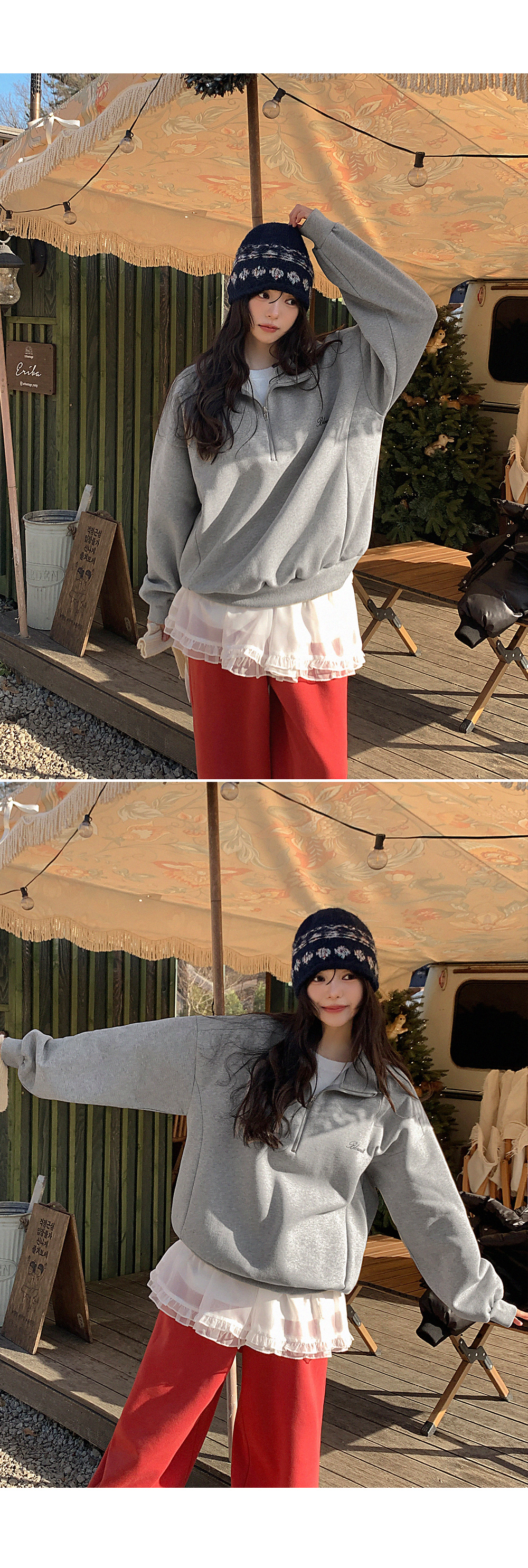 블루닛 刺繡 半拉鏈 加絨 寬鬆 運動衫 85066