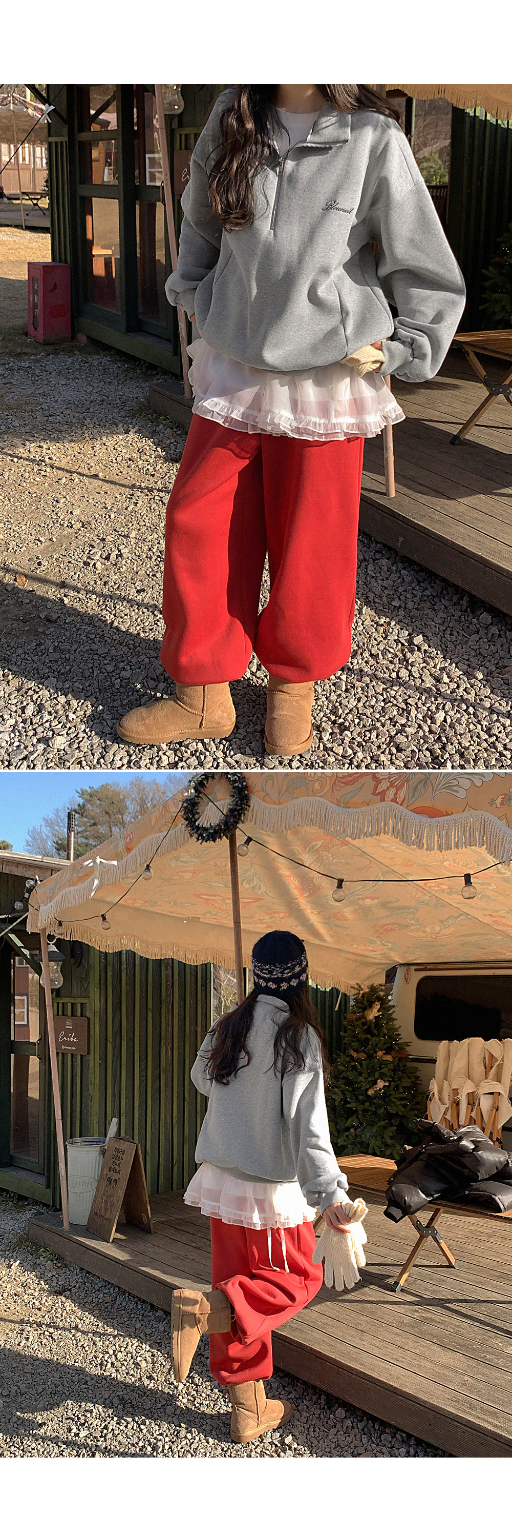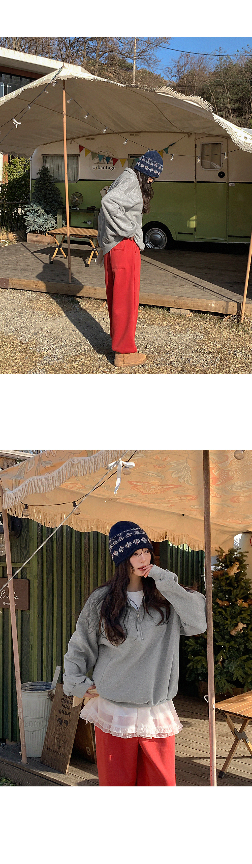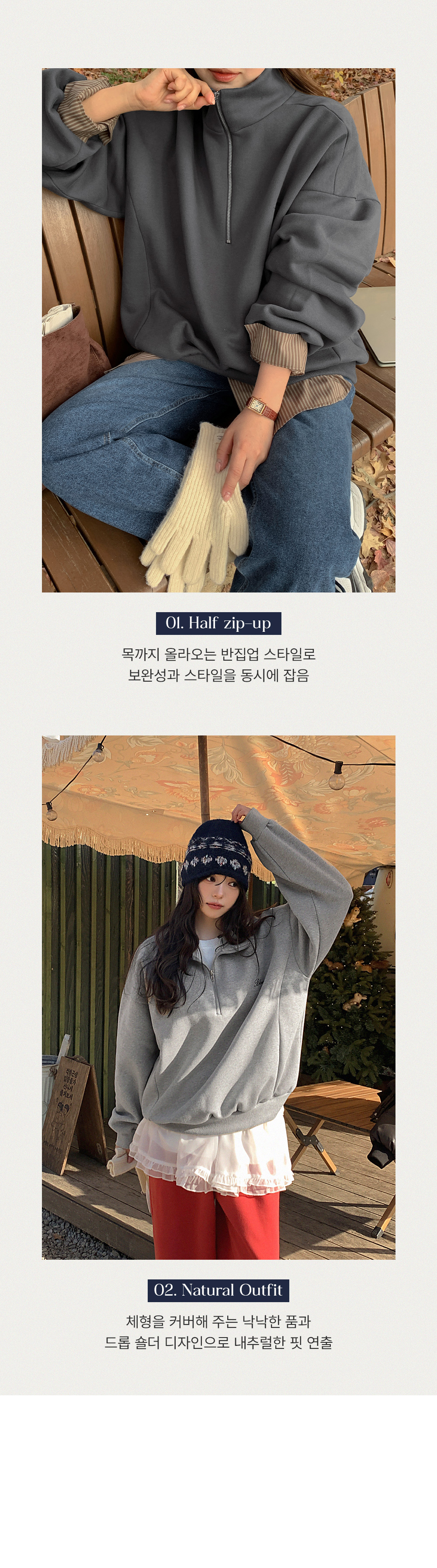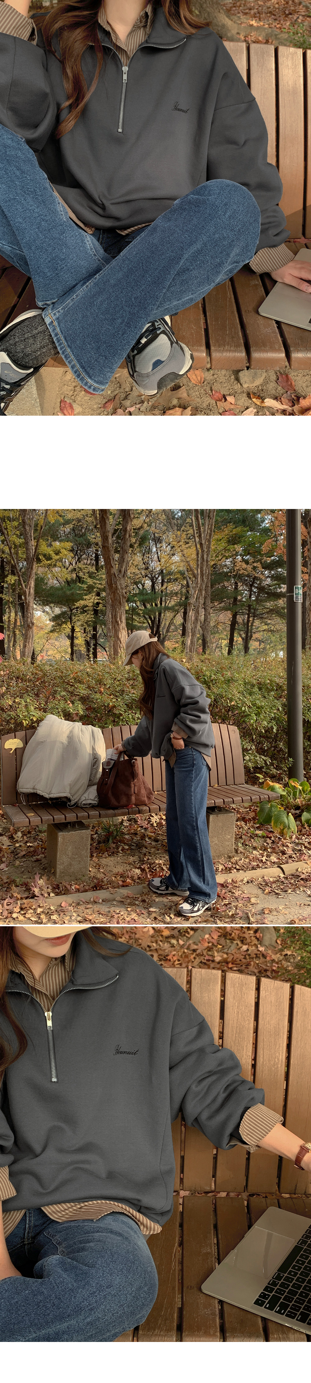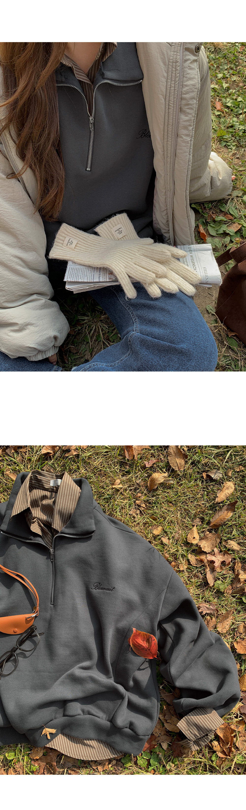 블루닛 刺繡 半拉鏈 加絨 寬鬆 運動衫 85066