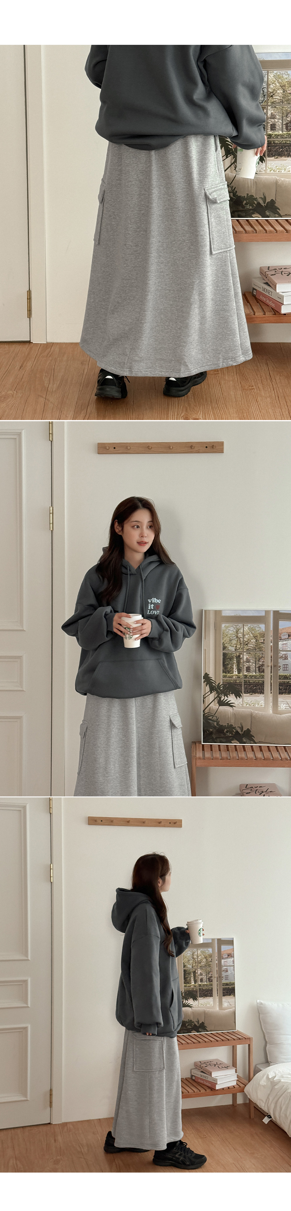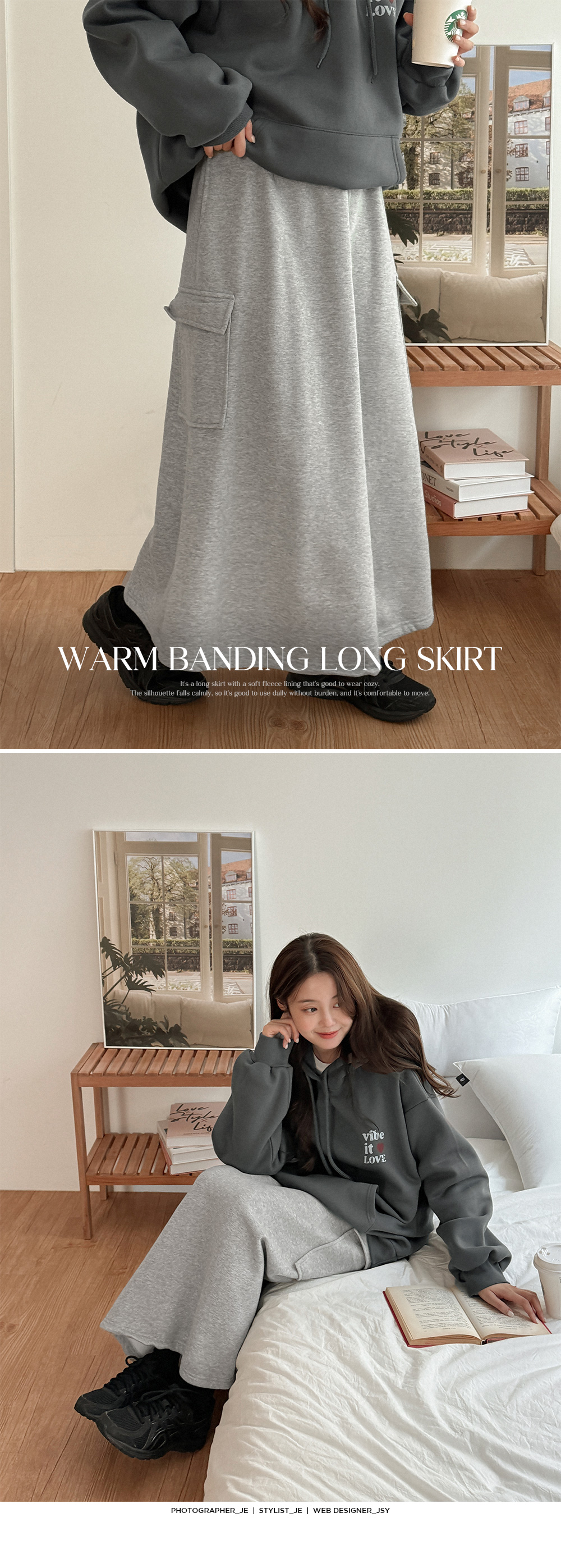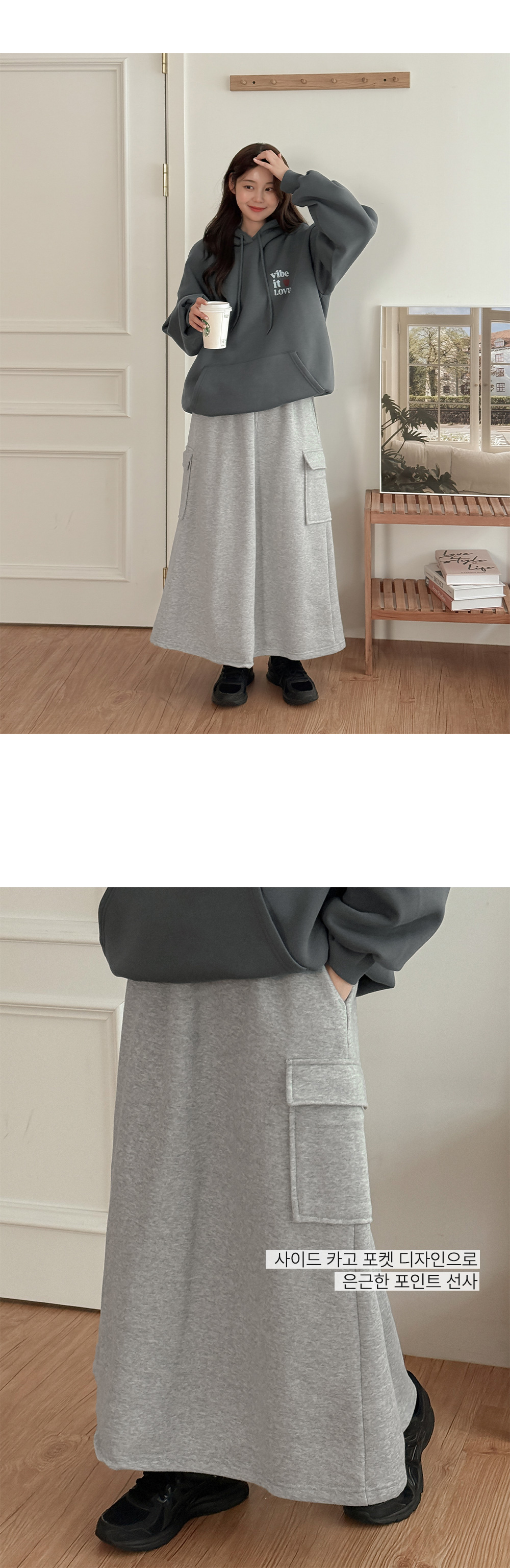 포근하게 입기 좋은 롱 스커트예요.