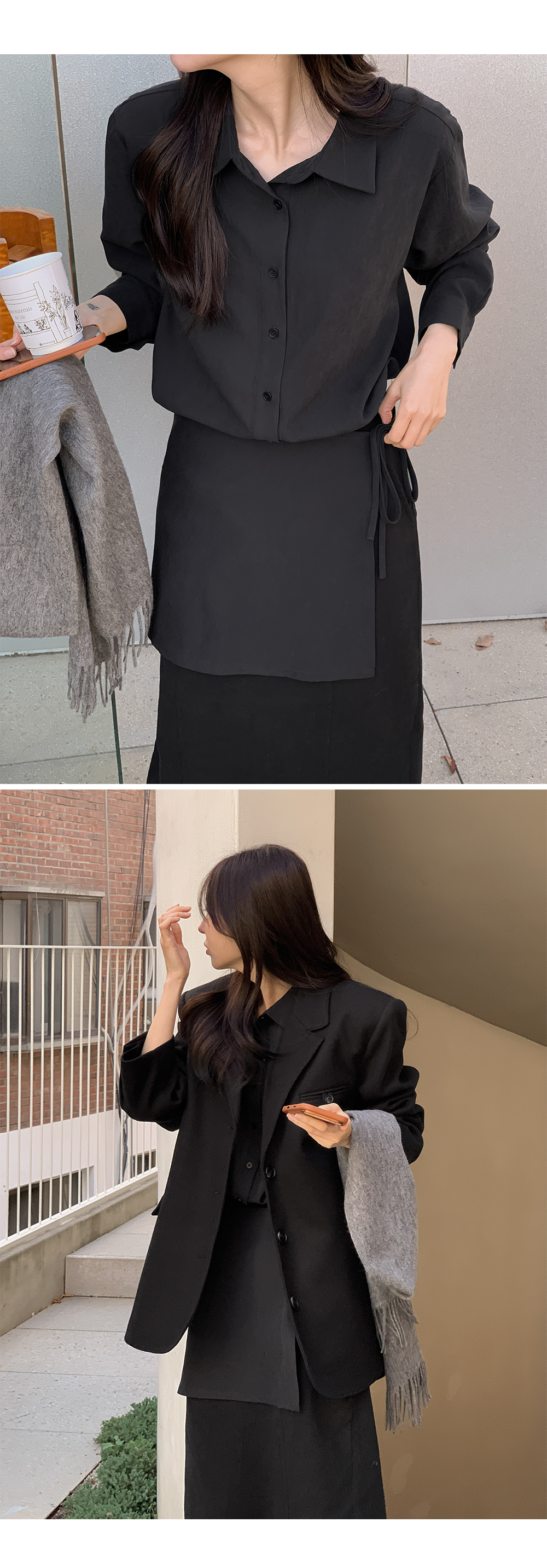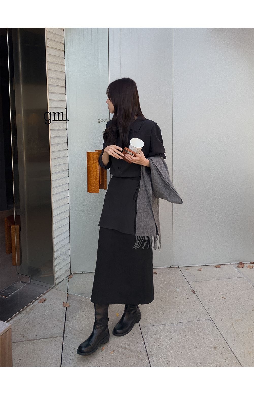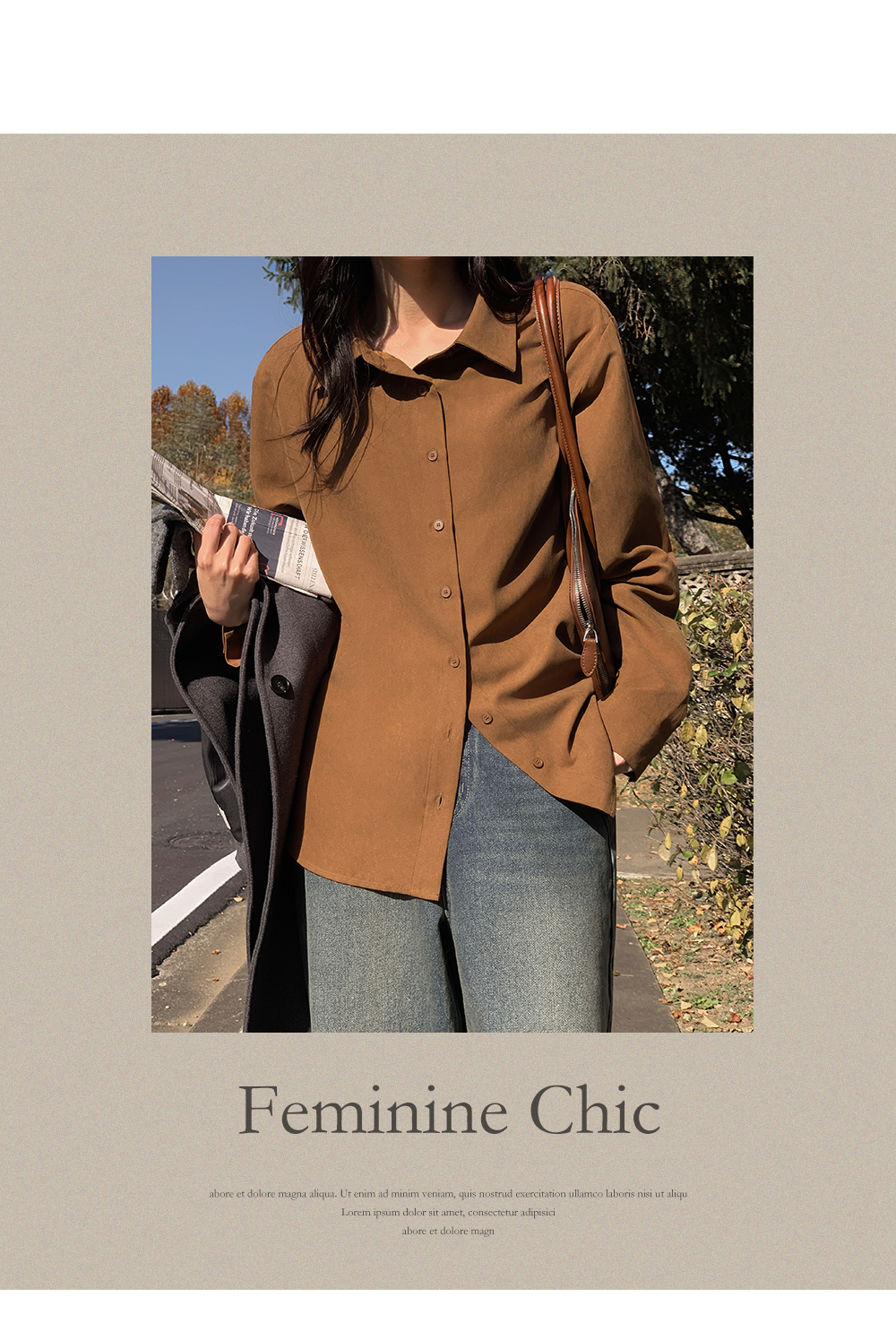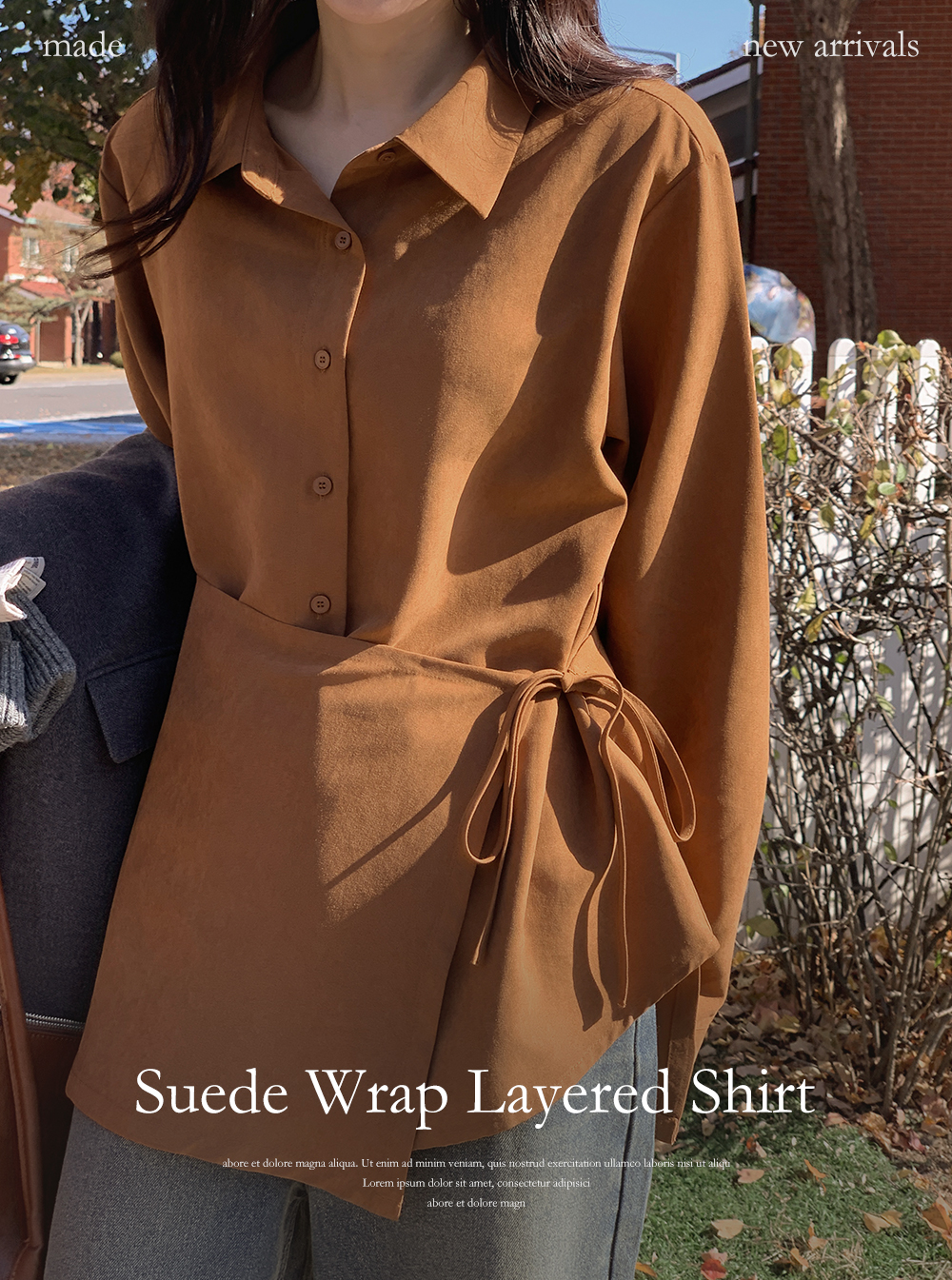시크 & 페미닌 스웨이드 랩 레이어드 셔츠