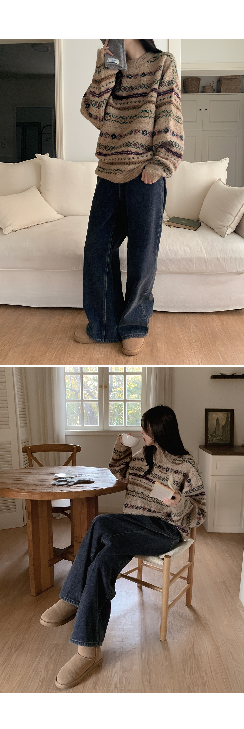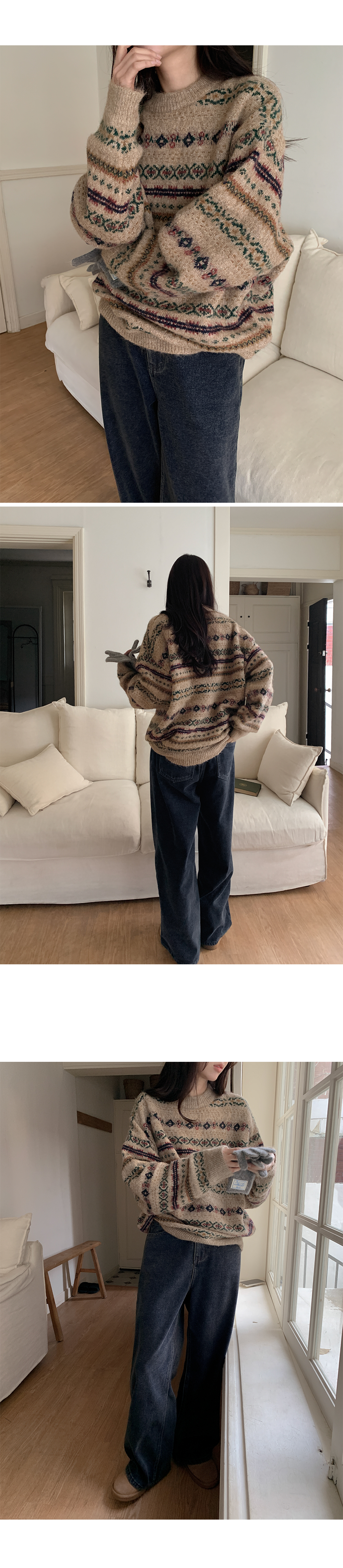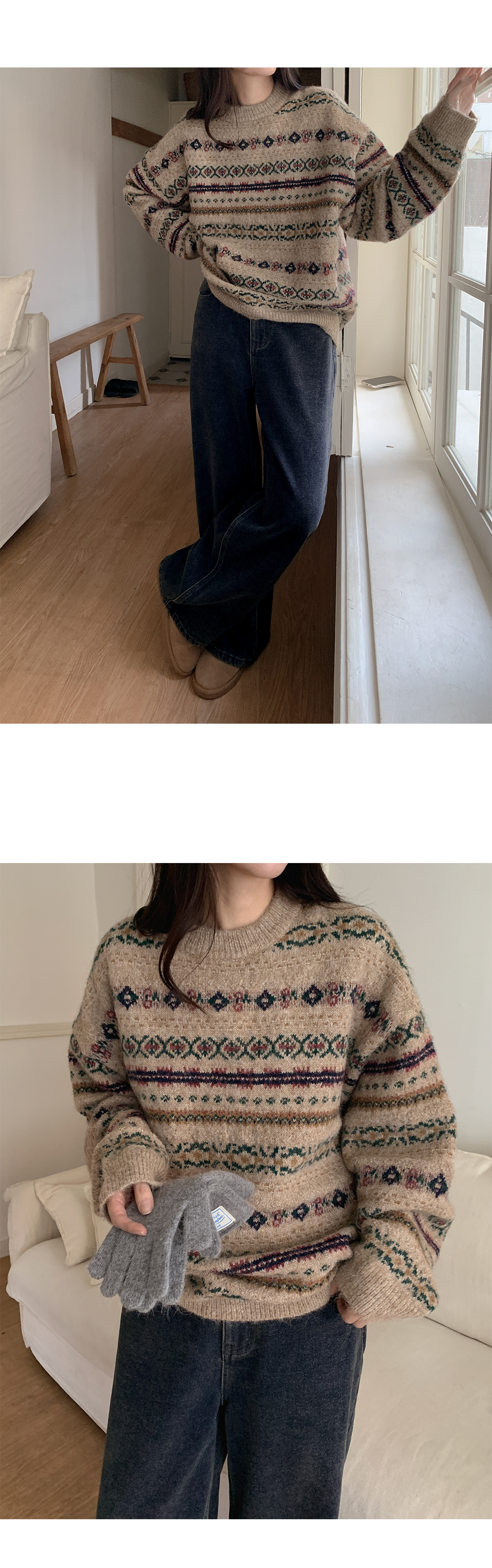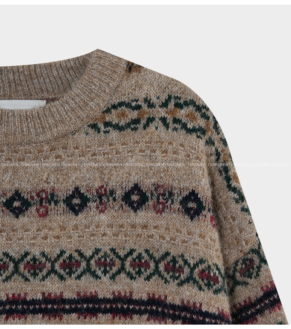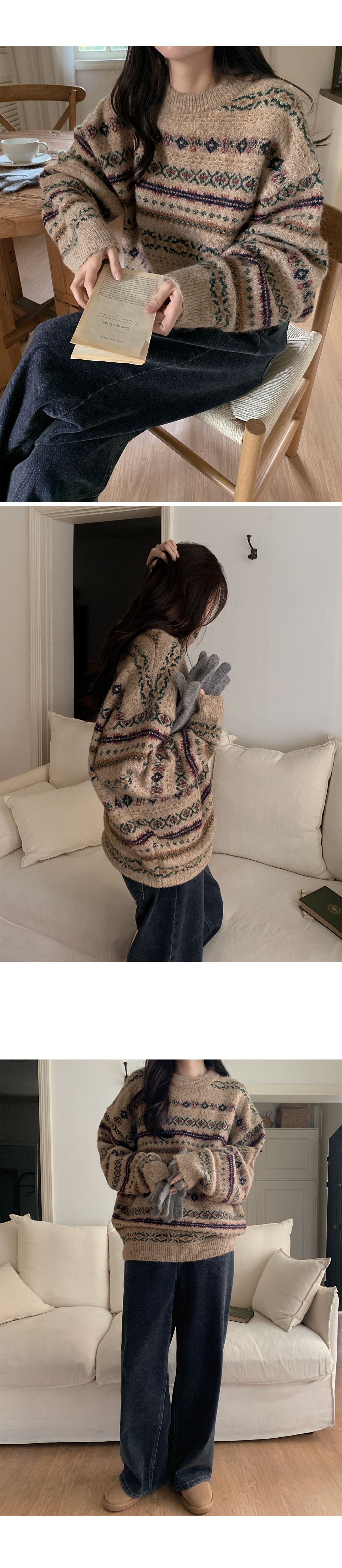 포근하고 멋스러운 패턴의 루즈핏 라운드 니트