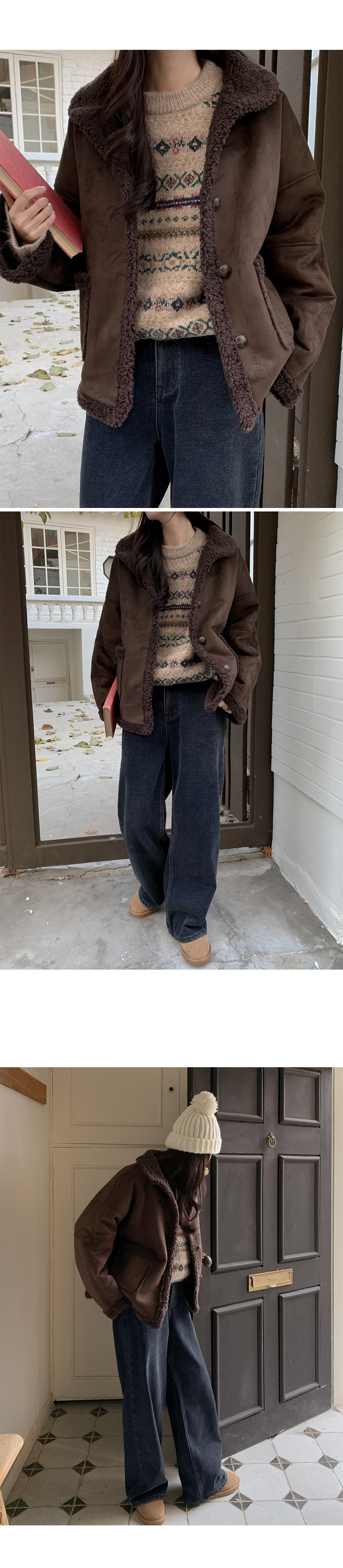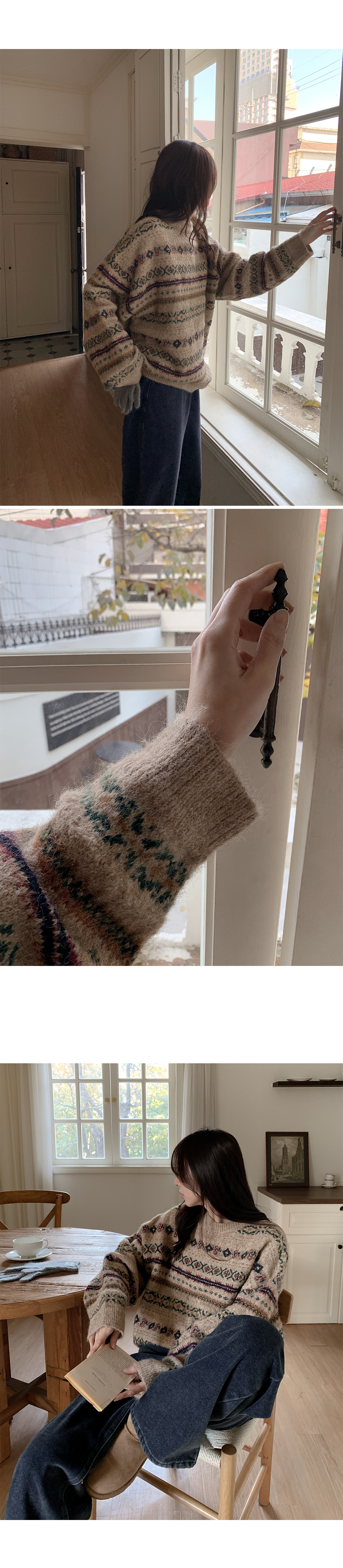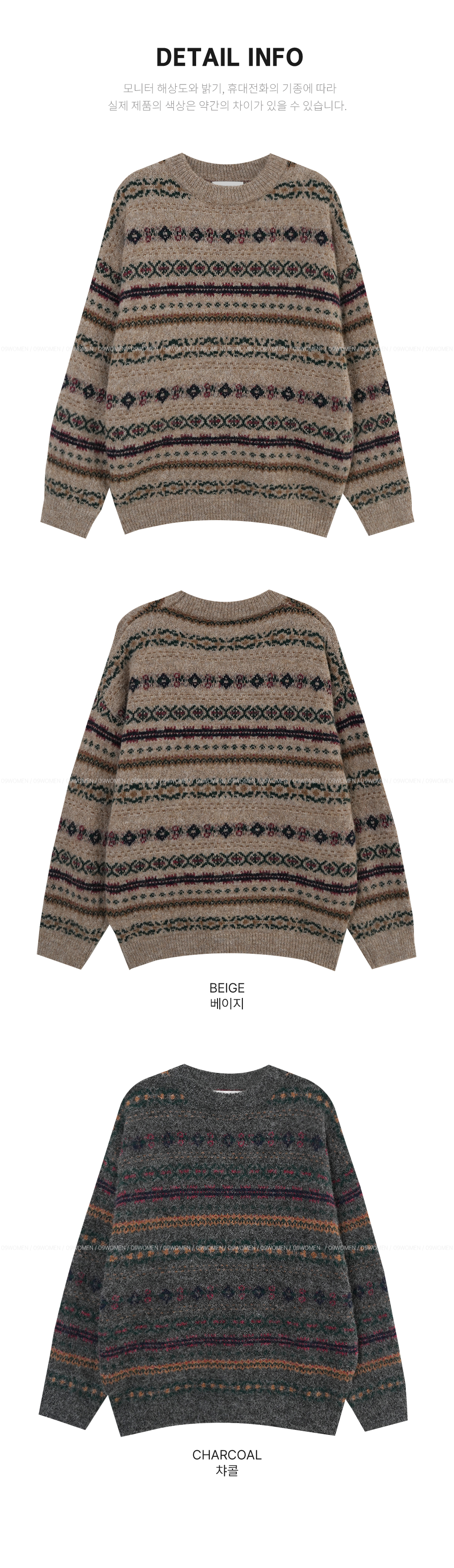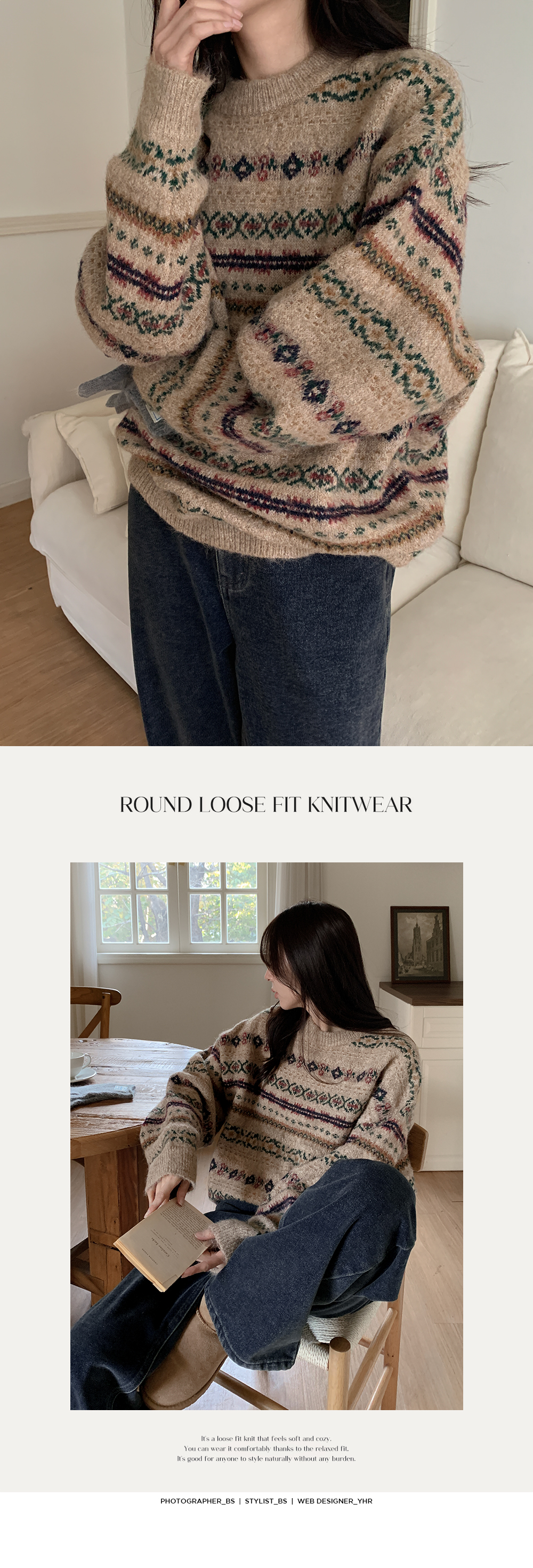 포근하고 멋스러운 패턴의 루즈핏 라운드 니트