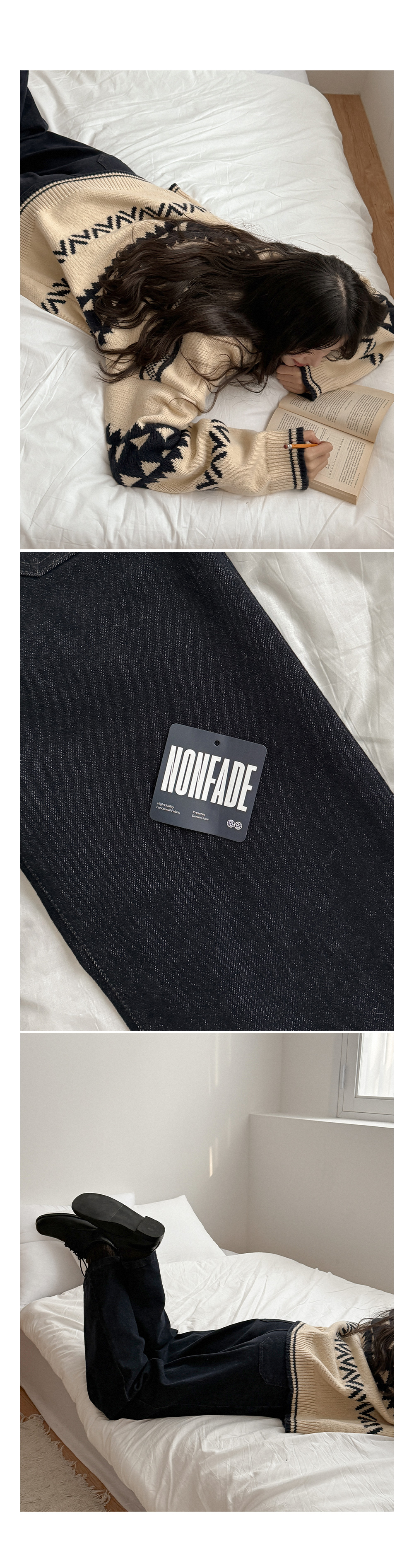 노엔 논페이드 加絨 鬆緊腰 寬 牛仔 褲 85314