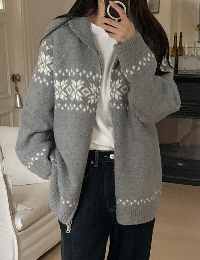 겨울 감성을 더해준 스눈 노르딕 패턴 니트 집업 ♥