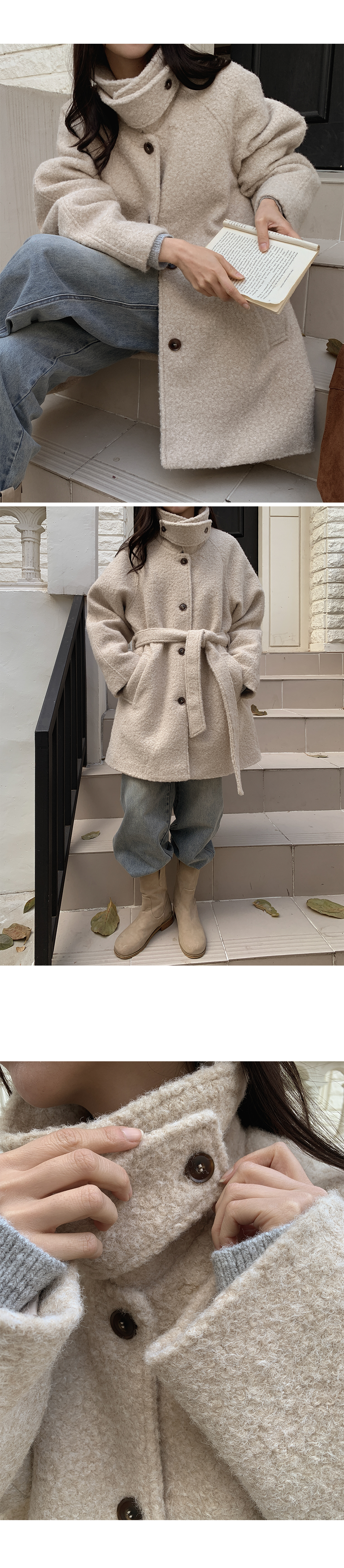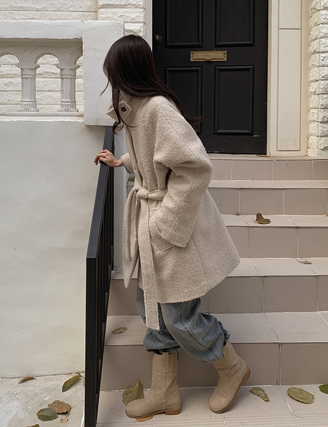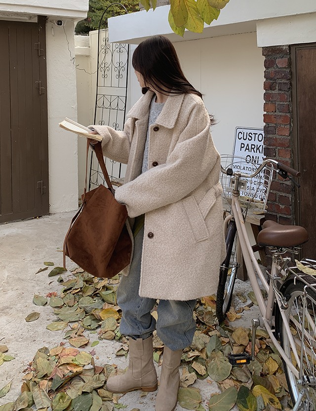 활용도 좋은 하프기장 양털 코트