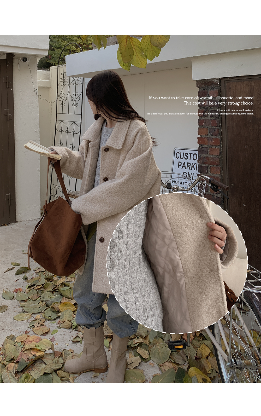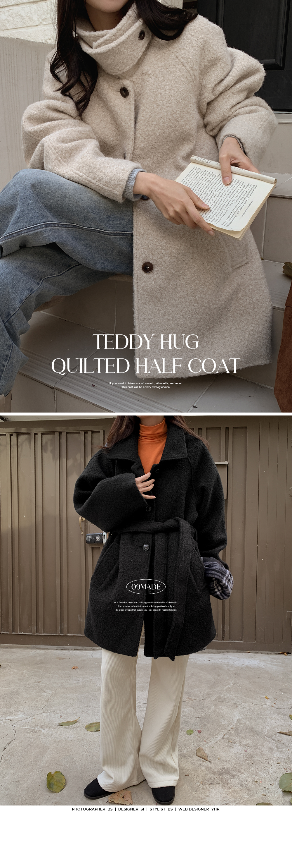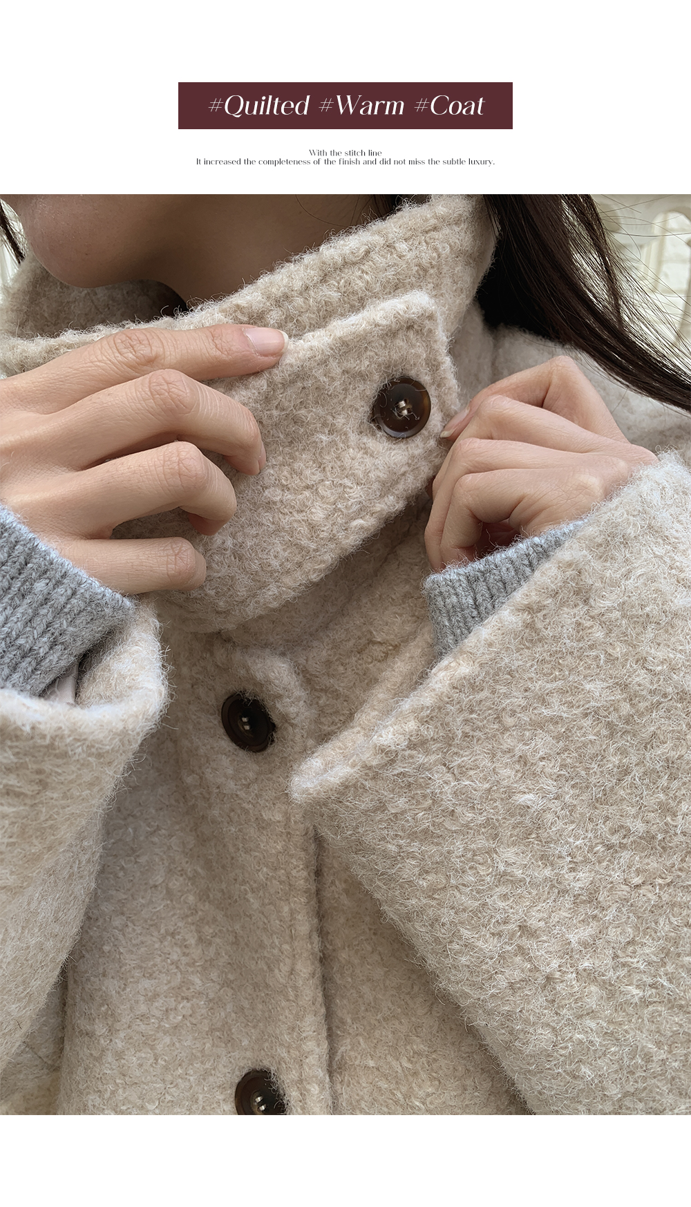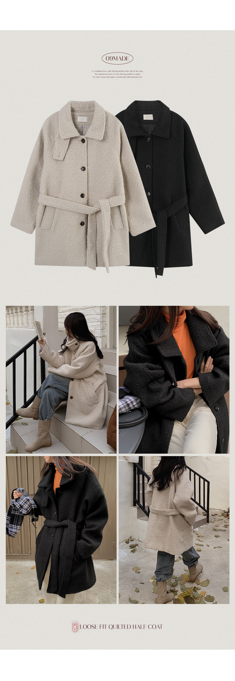 은은하게 감싸주는 누빔 안감을 더해 겨울 내내 믿고 찾게 되는 하프 코트예요.
