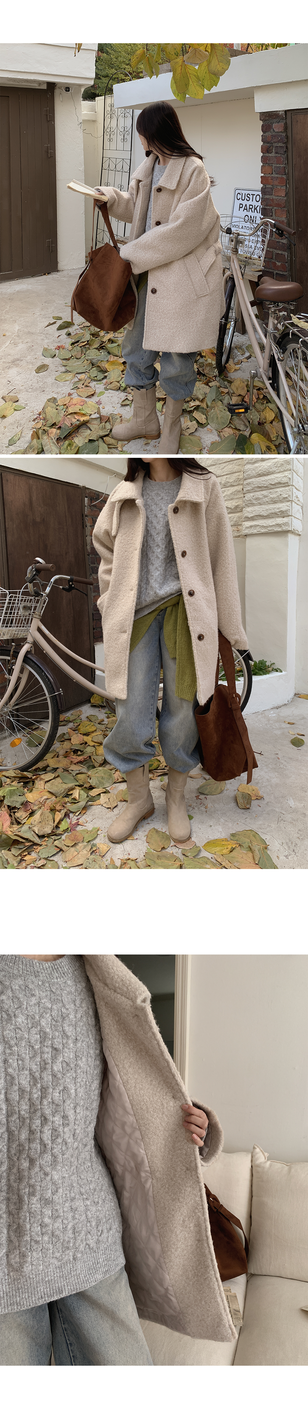 ✔ 보온성 높은 양털 텍스쳐 소재와 누빔안감 사용