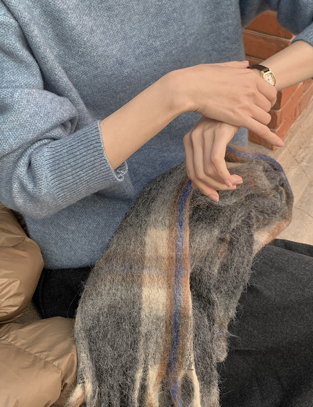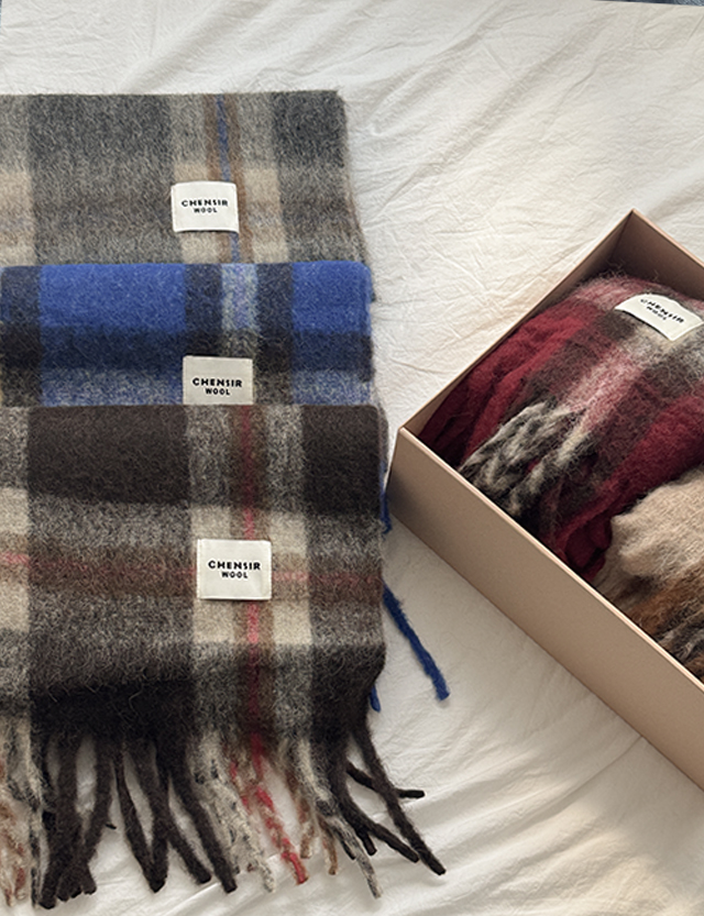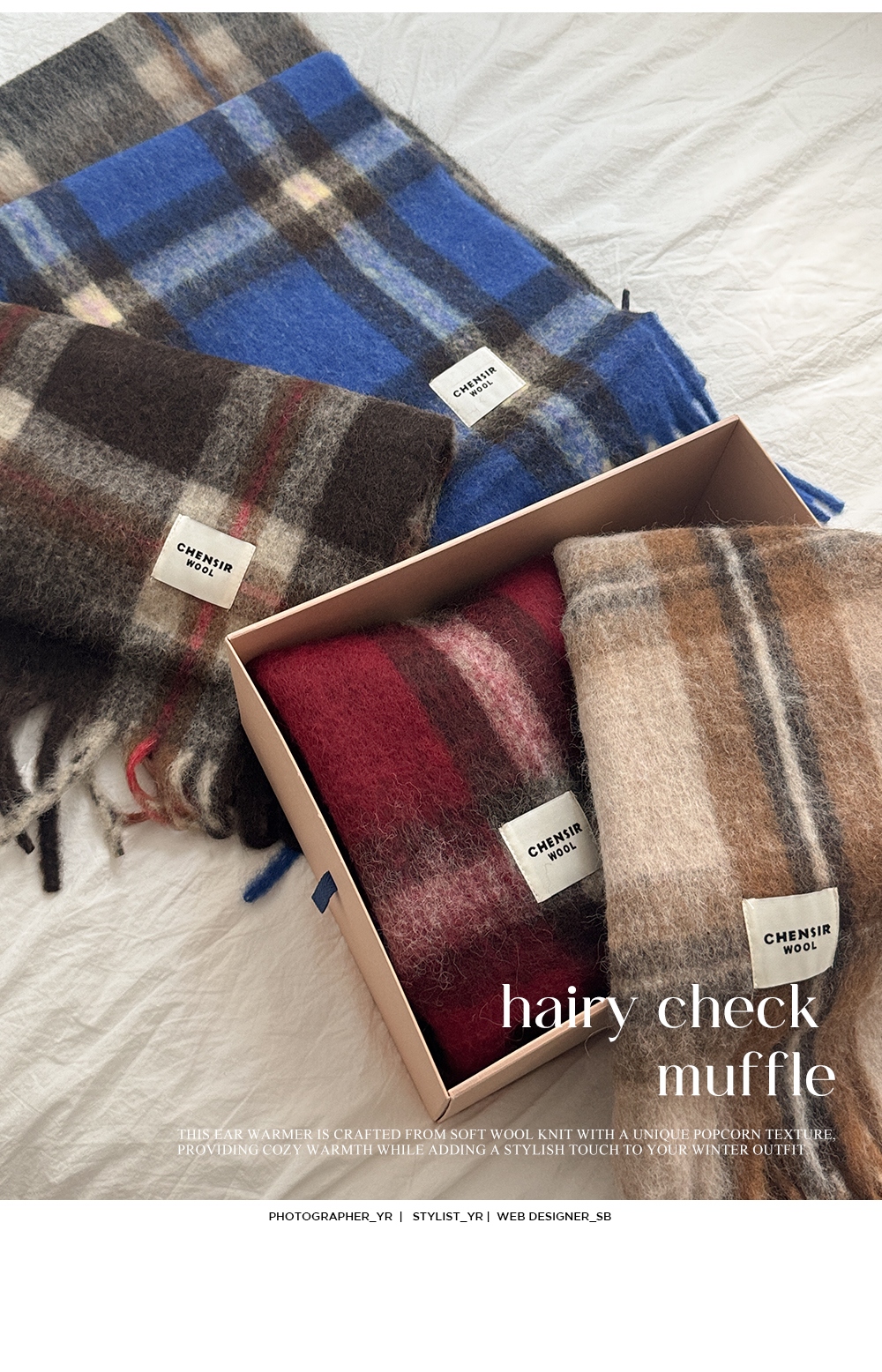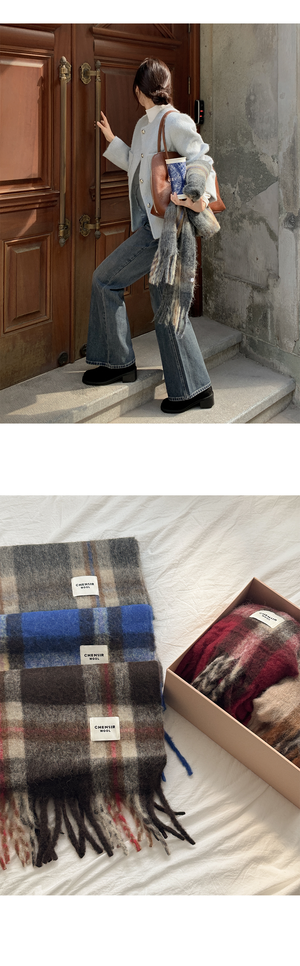 카니트 헤어리 格紋 羊毛 圍巾 84915