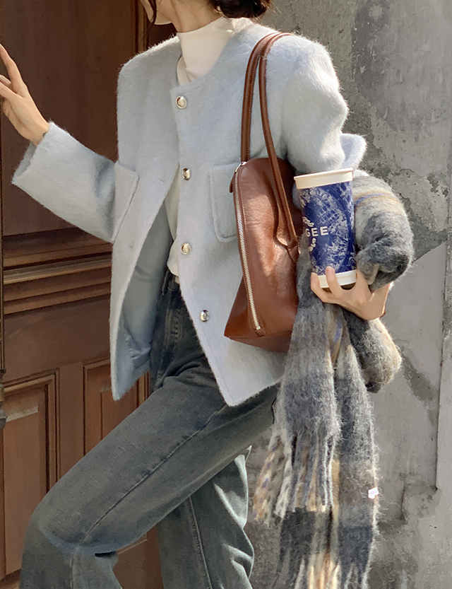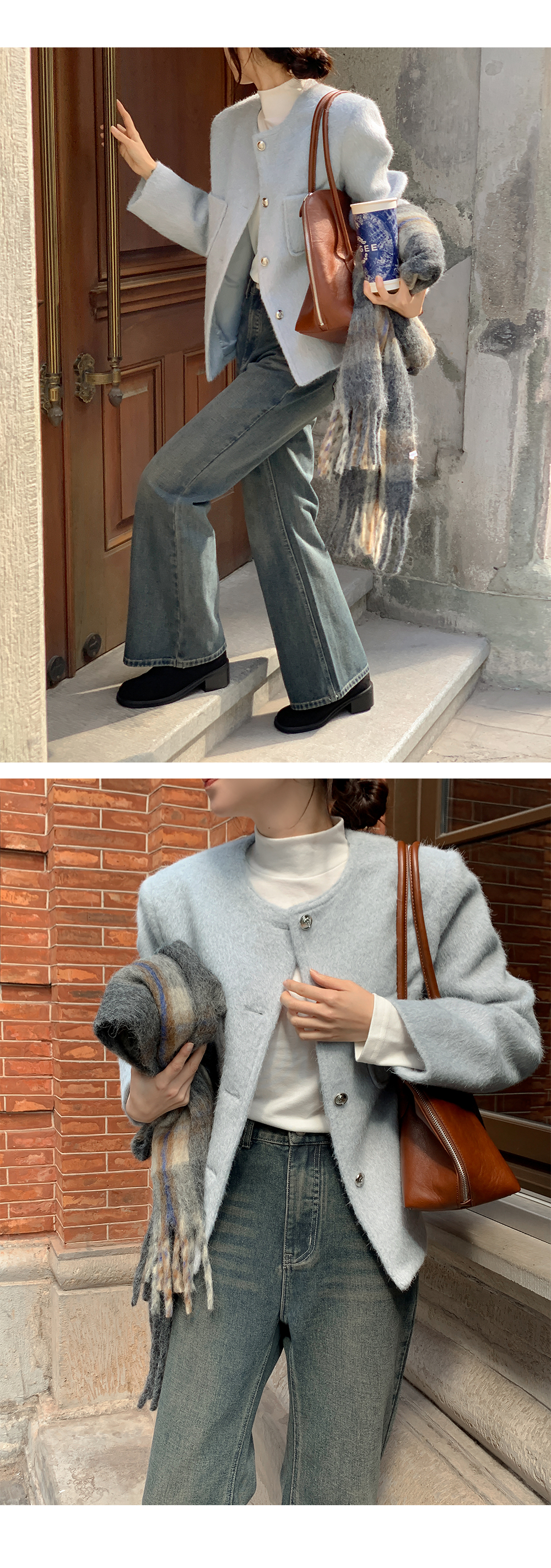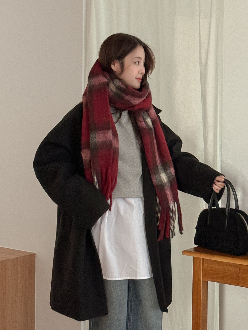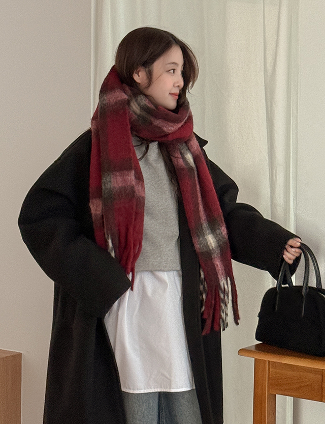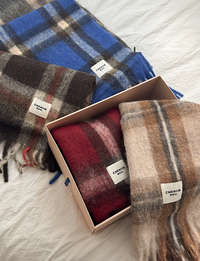 카니트 헤어리 格紋 羊毛 圍巾 84915