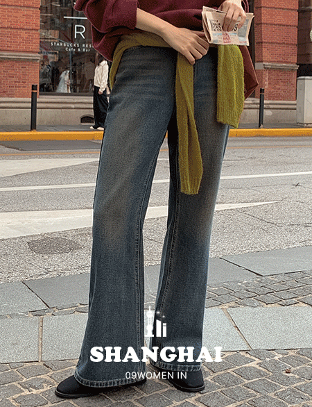 • 허넷 鬆緊腰 寬 喇叭 牛仔 褲 84570