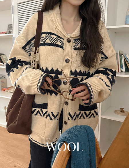 • 라흐니 北歐 披巾 領口 羊毛 針織 開襟外套 85313