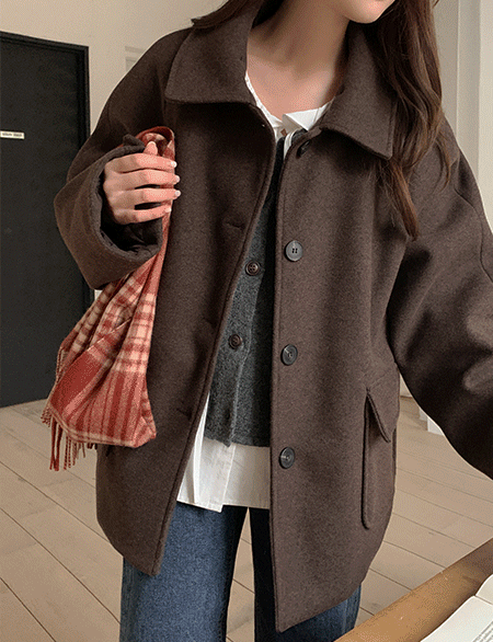 라노린 鋪棉 領口 短版 呢子大衣 (2唡) 85396