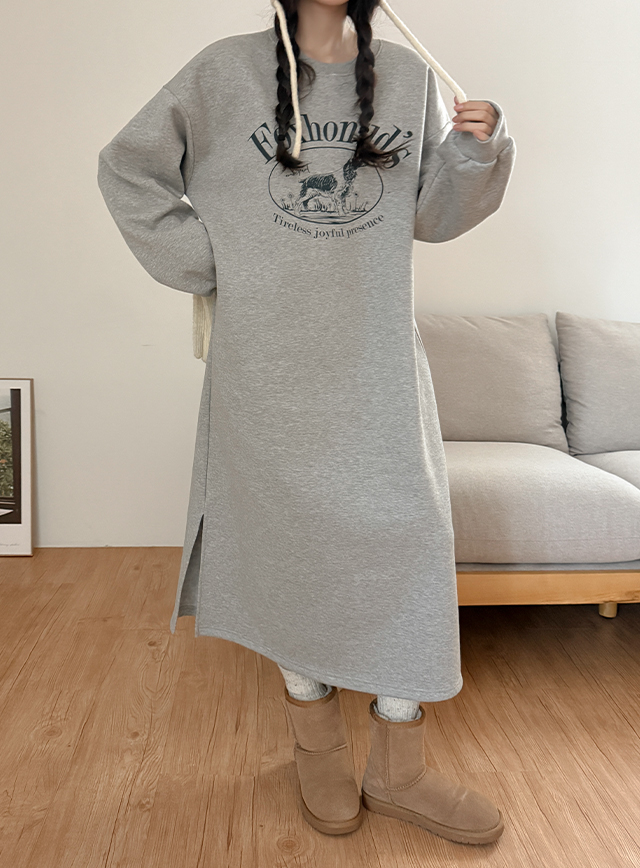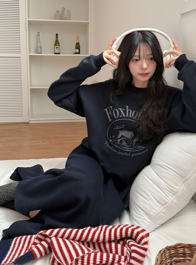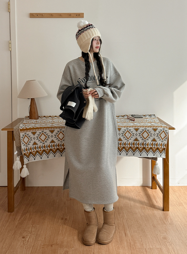 폭테일 寬鬆 加絨 長款 洋裝 85512