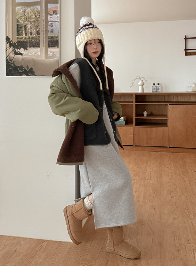 • 멀킨 高領 綁帶 毛皮草 拉鏈外套 (2唡) 85513