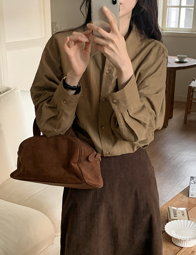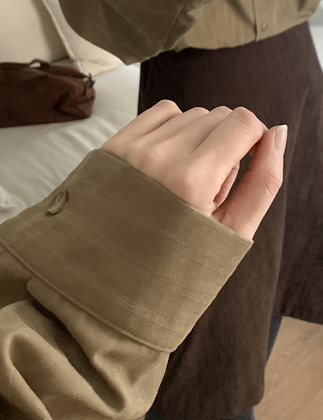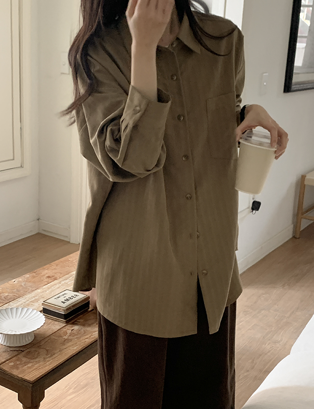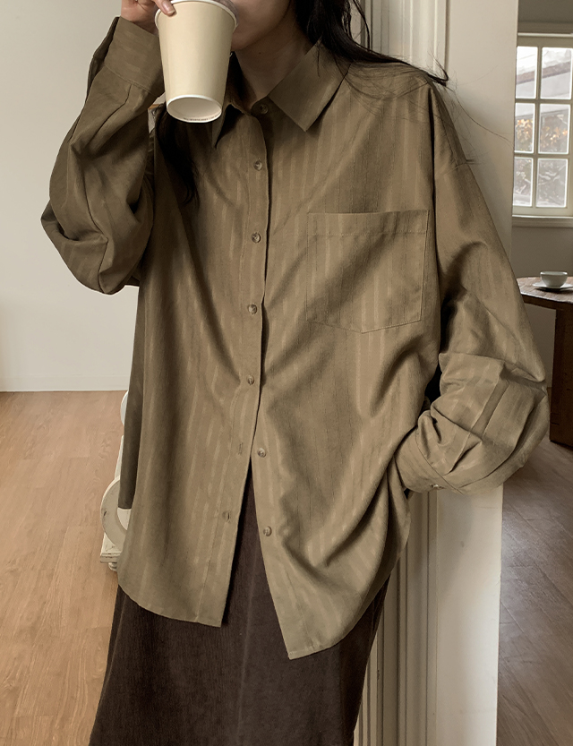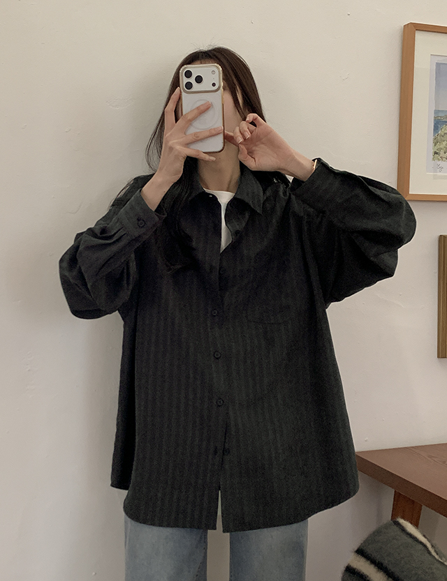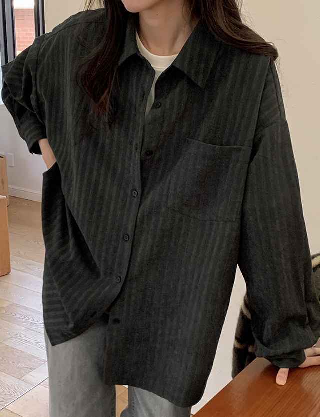 특별하고 매력적인 스웨이드 소재감의 루즈핏 스트라이프 셔츠