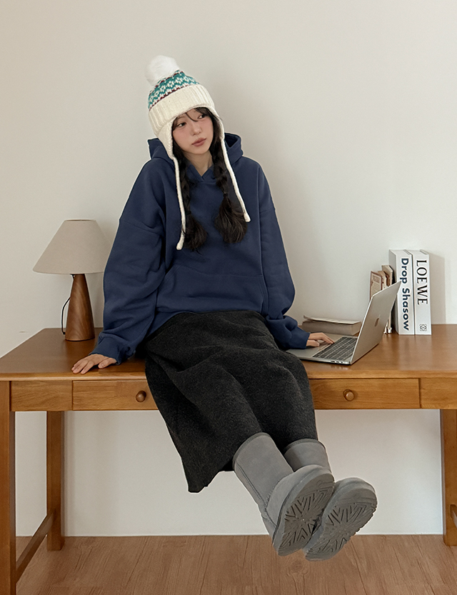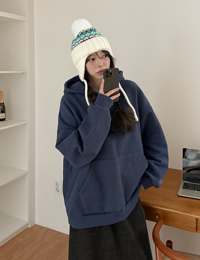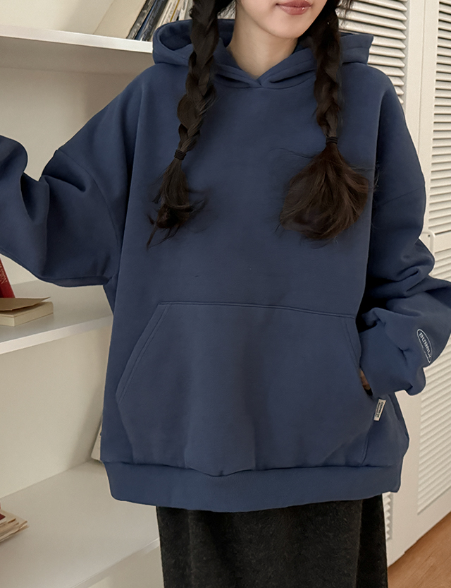 따뜻한 양기모 원단이 주는 포근함이 가장 먼저 전해지는 후드예요.