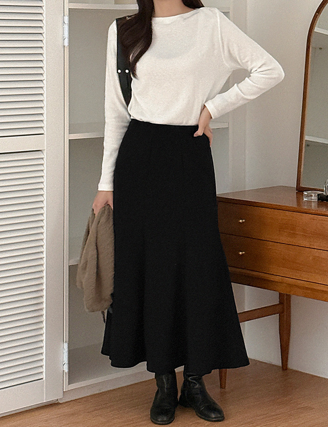 멜트닝 鬆緊腰 절개 魚尾 加絨 長裙 85431