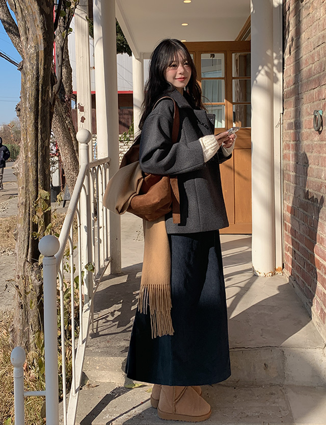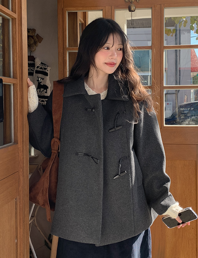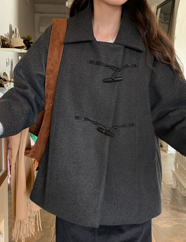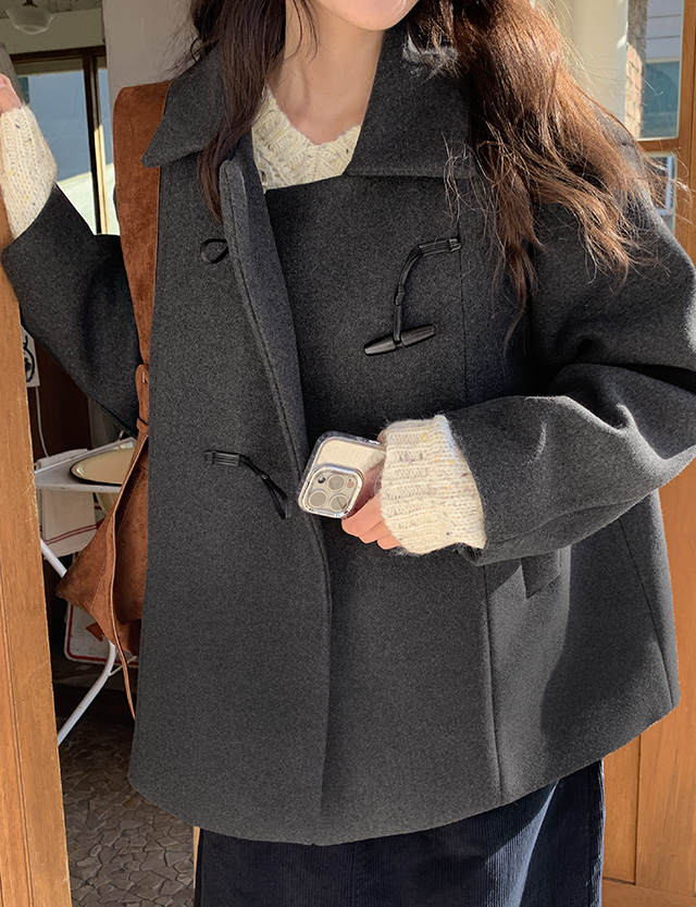 노아드 領口 短版 더플 羊毛 呢子大衣 85459