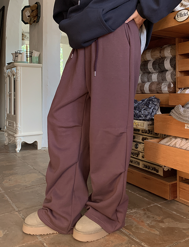 루셀디 打摺 線條 寬 加絨 褲 85470