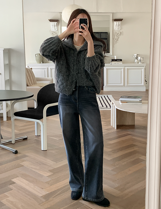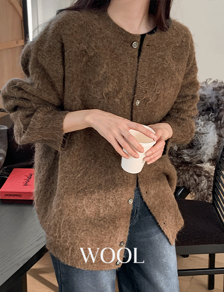 무센튼 헤어리 圓領 羊毛 針織 開襟外套 85420