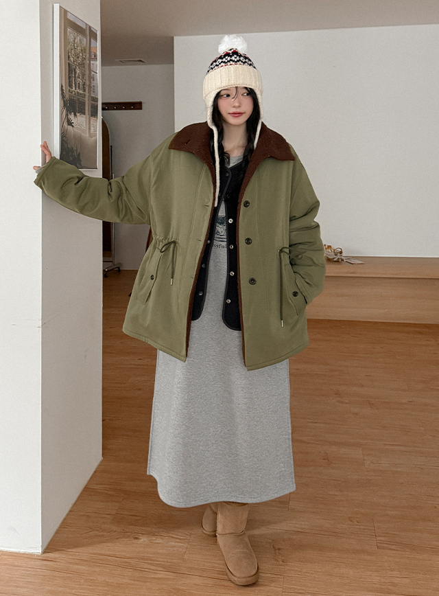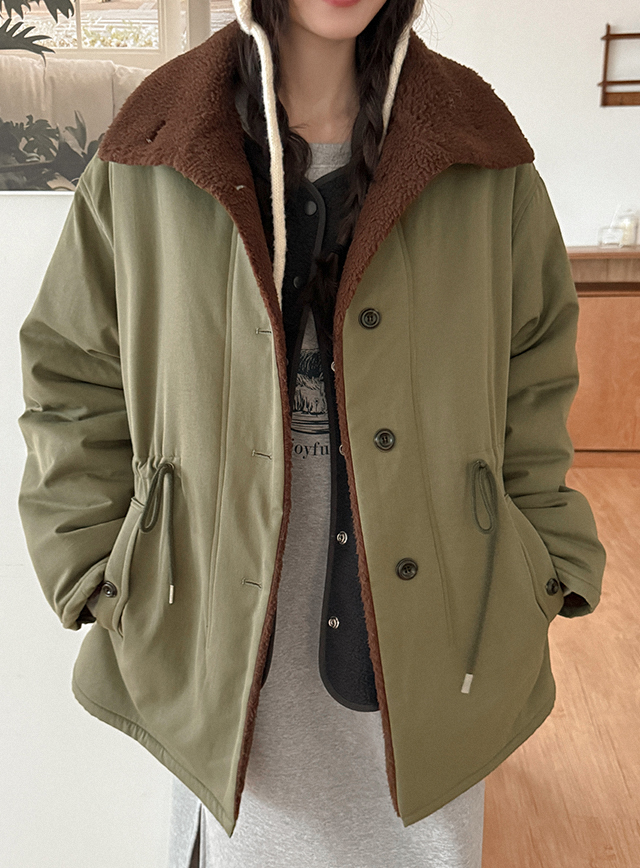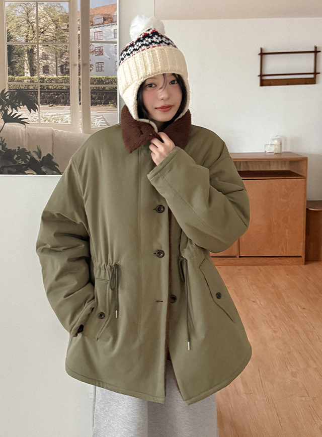 멀킨 高領 綁帶 毛皮草 拉鏈外套 (2唡) 85513