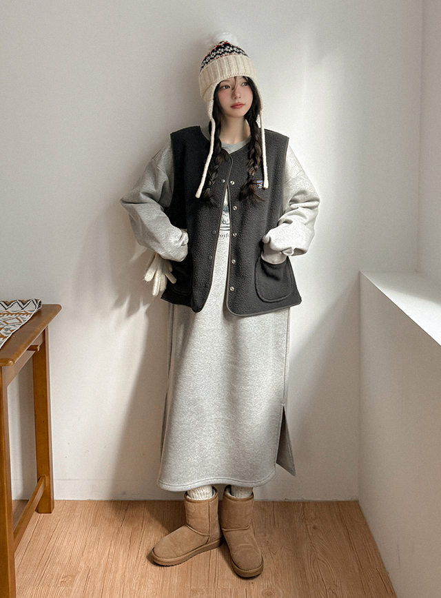 폭테일 寬鬆 加絨 長款 洋裝 85512