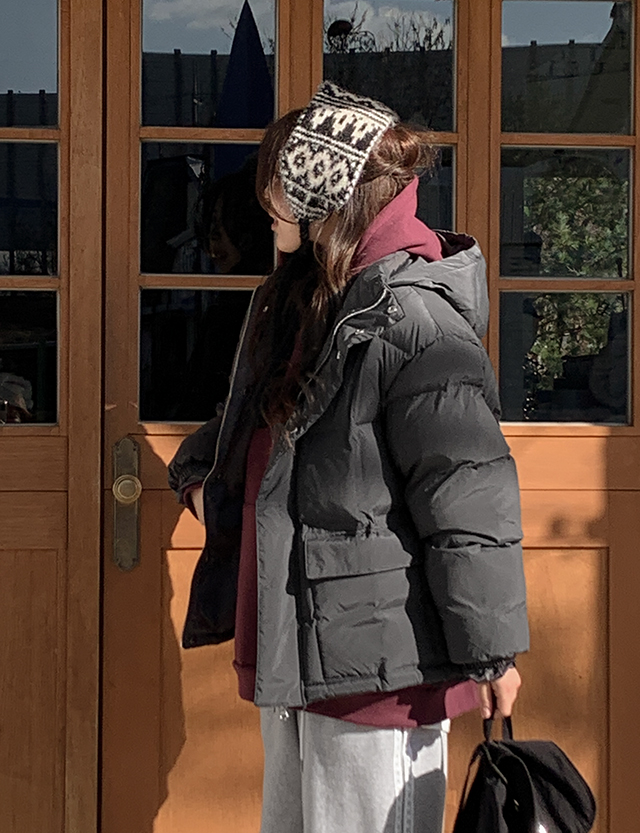 부드럽고 포근한 착용감이 돋보이는 덕 다운 패딩으로,