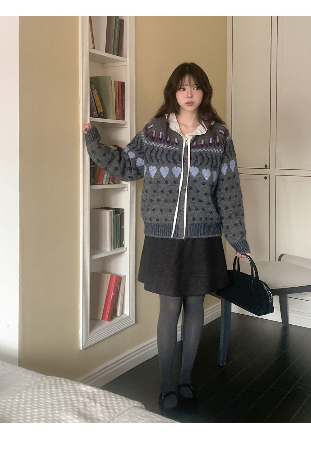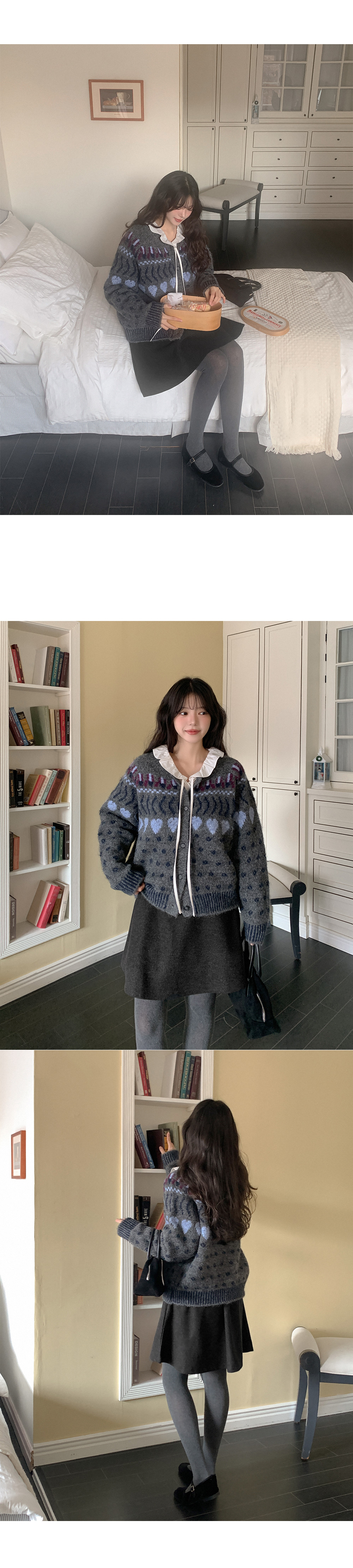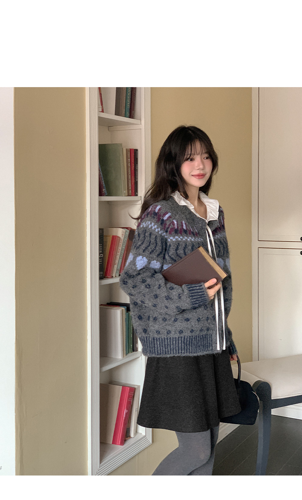 • 하루비 자카드 寬鬆 羊毛 開襟外套 85541