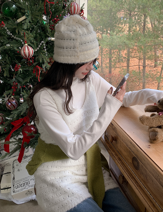 제닐 印花 分層 羊毛 針織 洋裝 85447