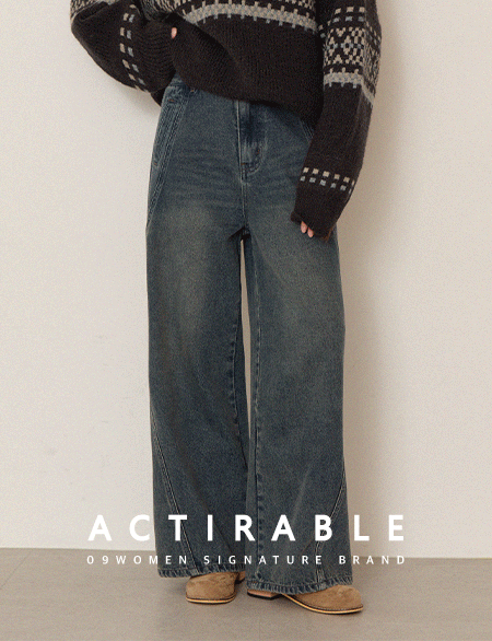 • 클라쎄 사선절개 寬 鬆緊腰 牛仔 褲 85643