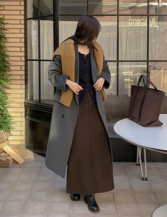 커빈 寬鬆 雙 羊毛 長款 呢子大衣 85412