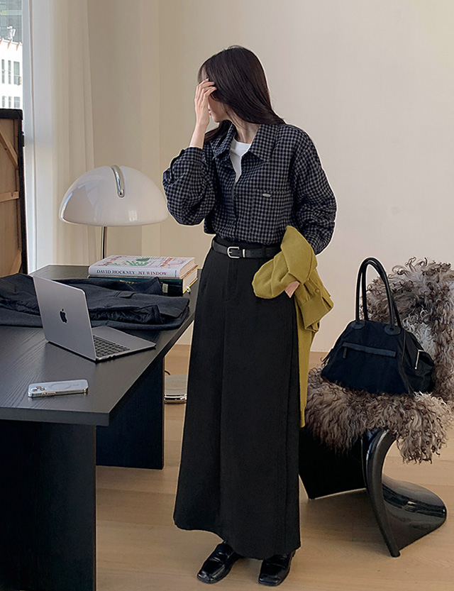 프세인 寬鬆 加絨 格紋 關鍵點 襯衫 85418