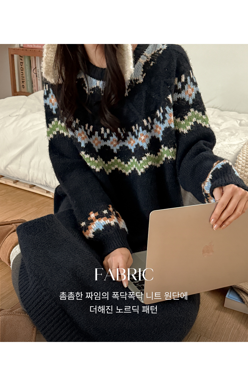 노르딕 패턴으로 겨울 무드 가득한 니트 원피스예요! ❄️