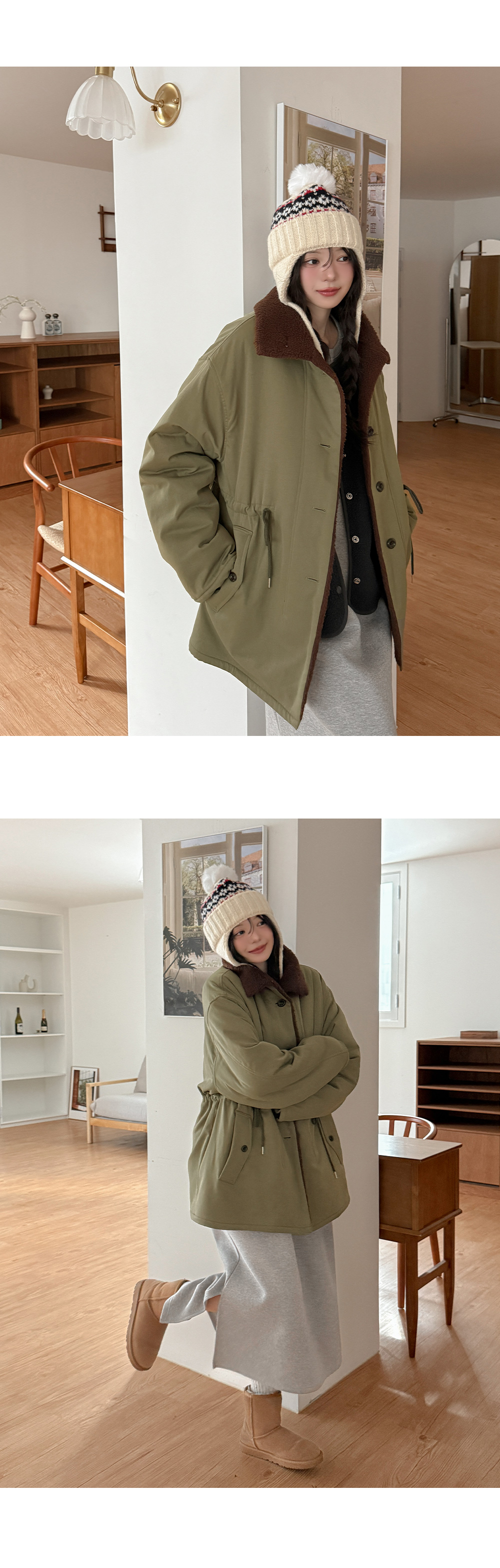 멀킨 高領 綁帶 毛皮草 拉鏈外套 (2唡) 85513