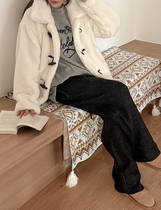 포세린 領口 더플 羊毛 拉鏈外套 85666
