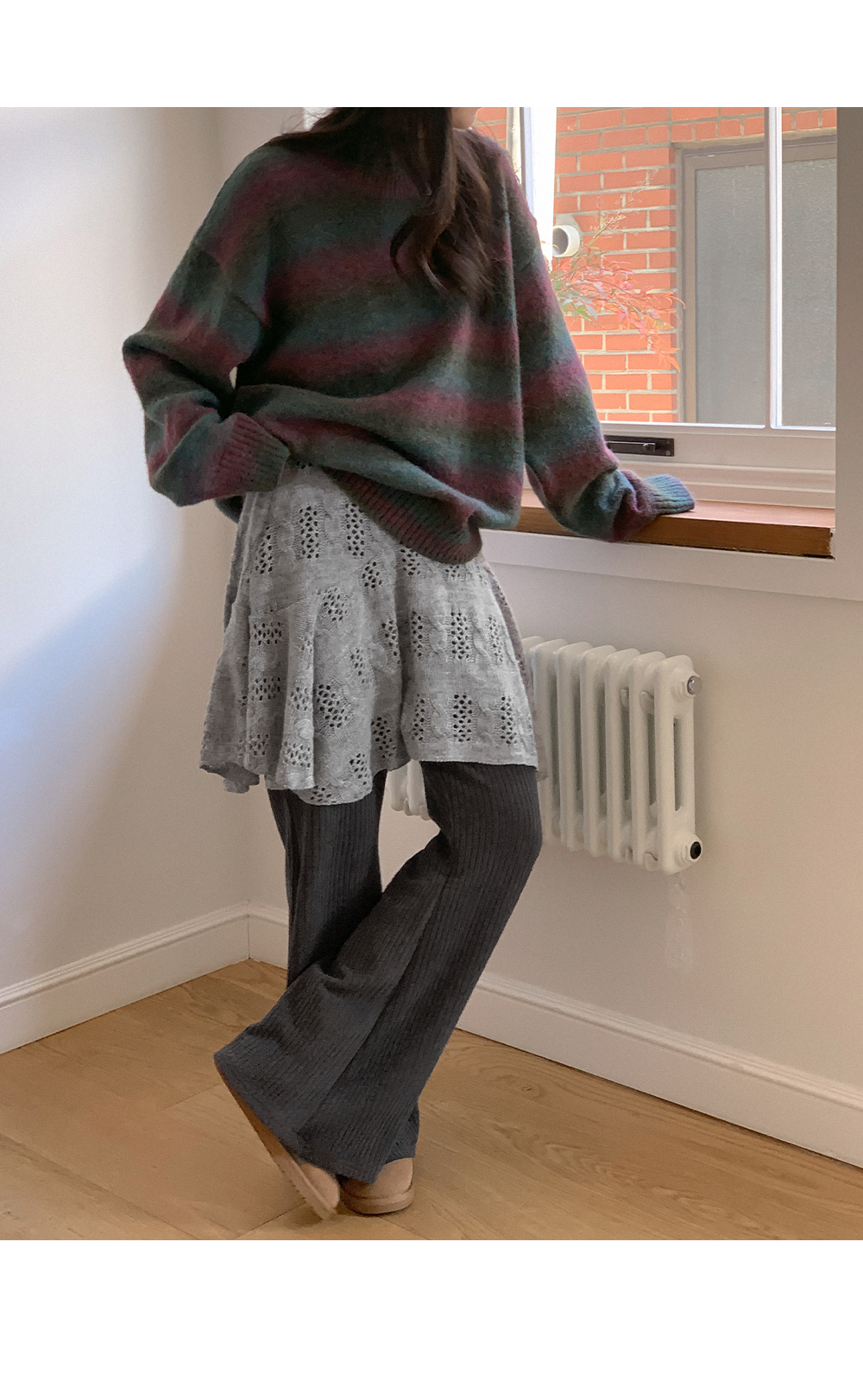 쿠크오 羅紋 喇叭 彈力 鬆緊腰 褲 85538