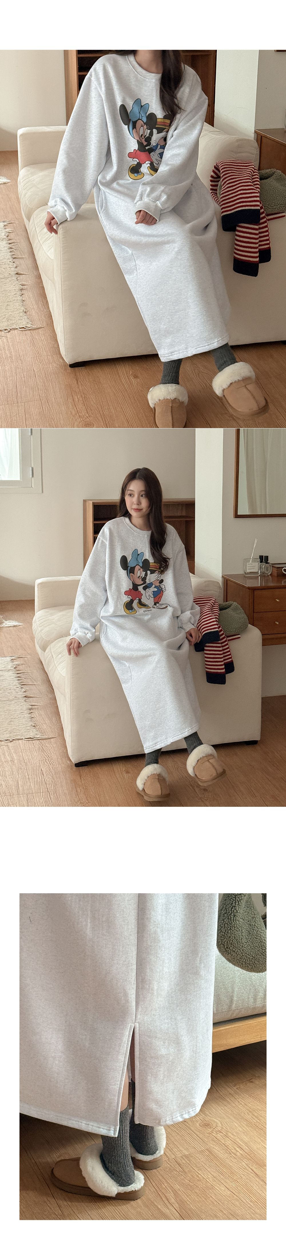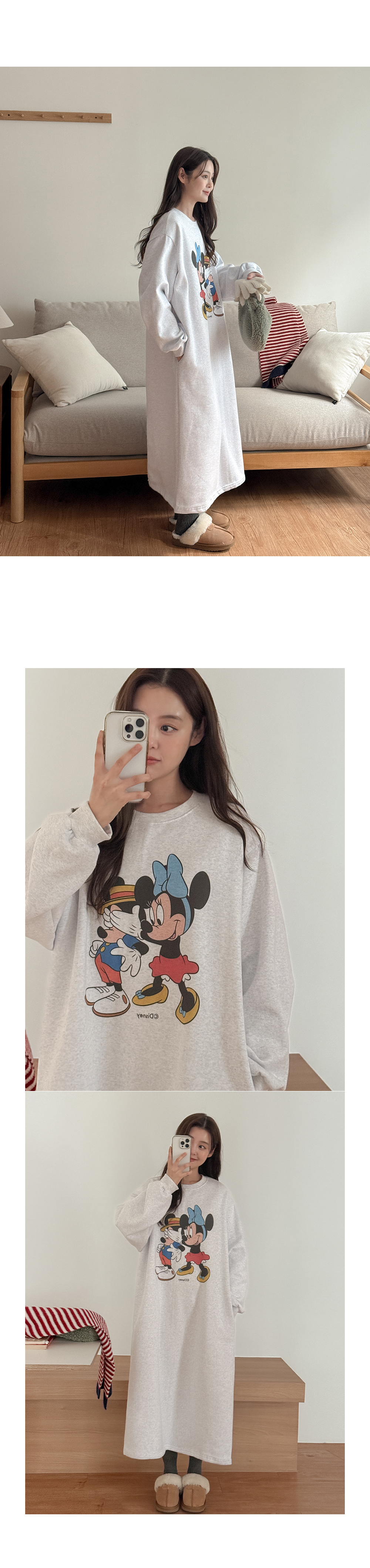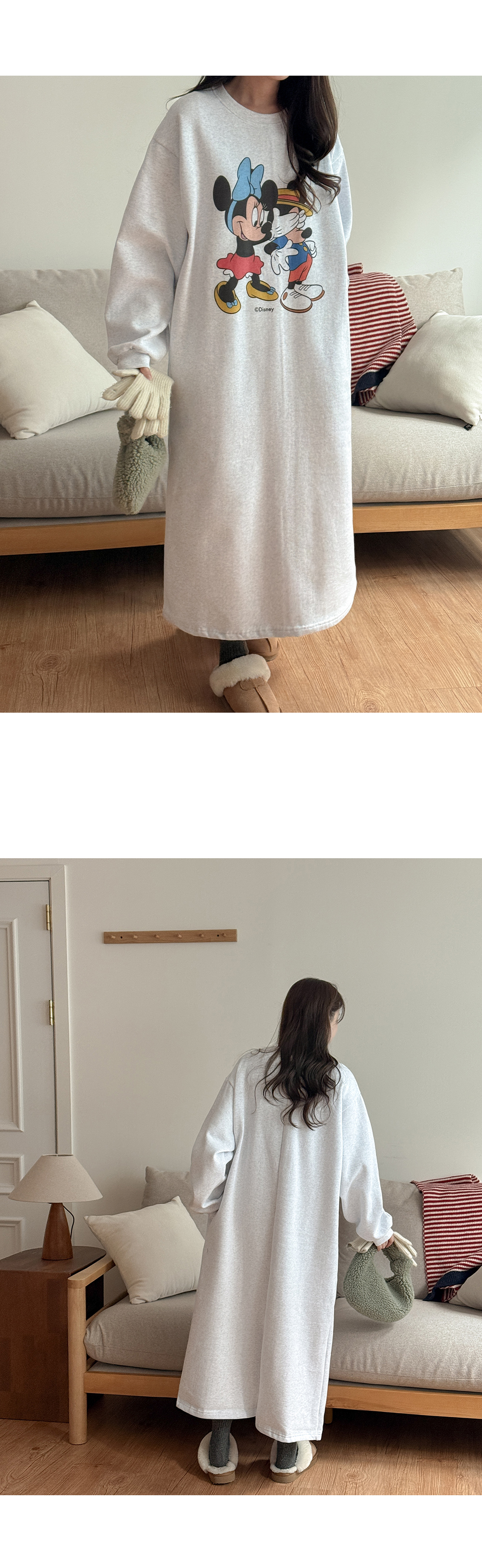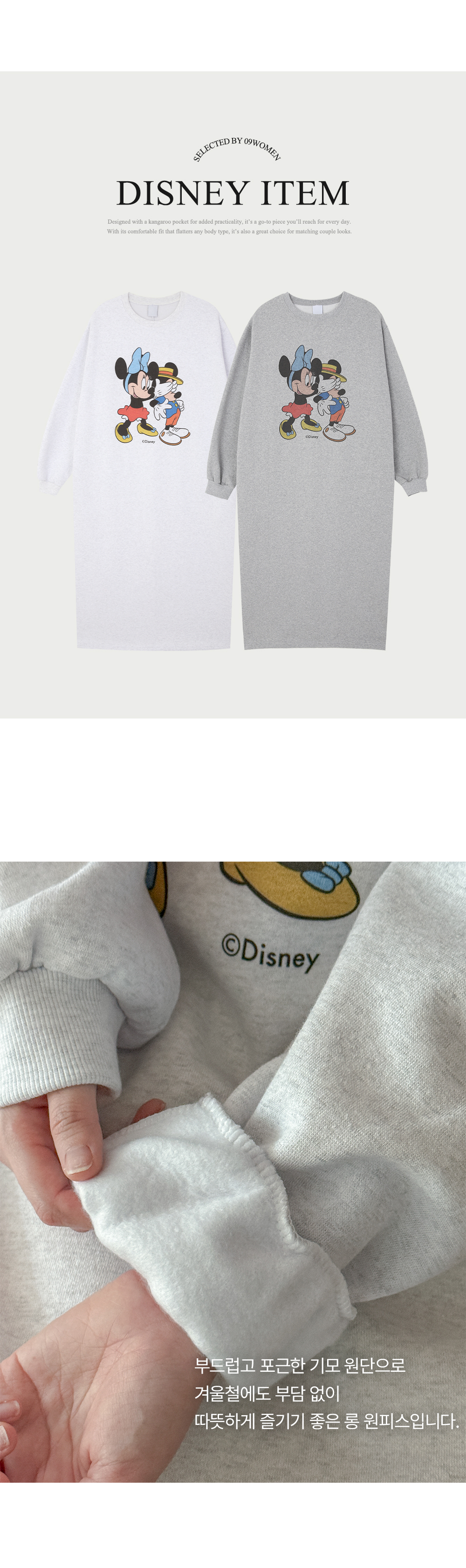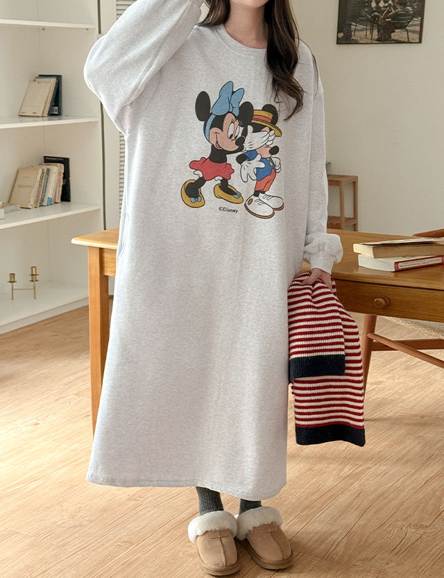 [迪士尼正品] 류셀 윈터 印花 加絨 포켓 長款 洋裝 85773