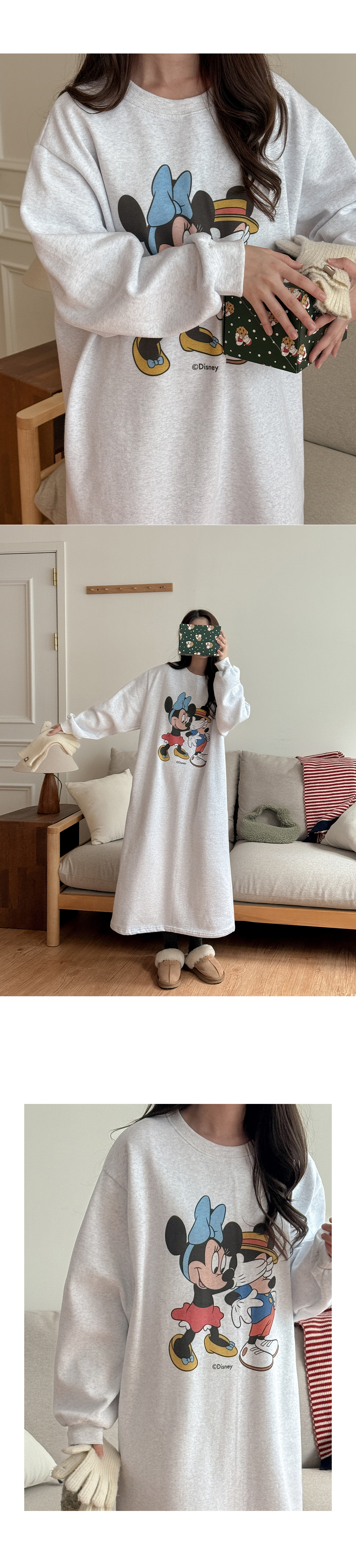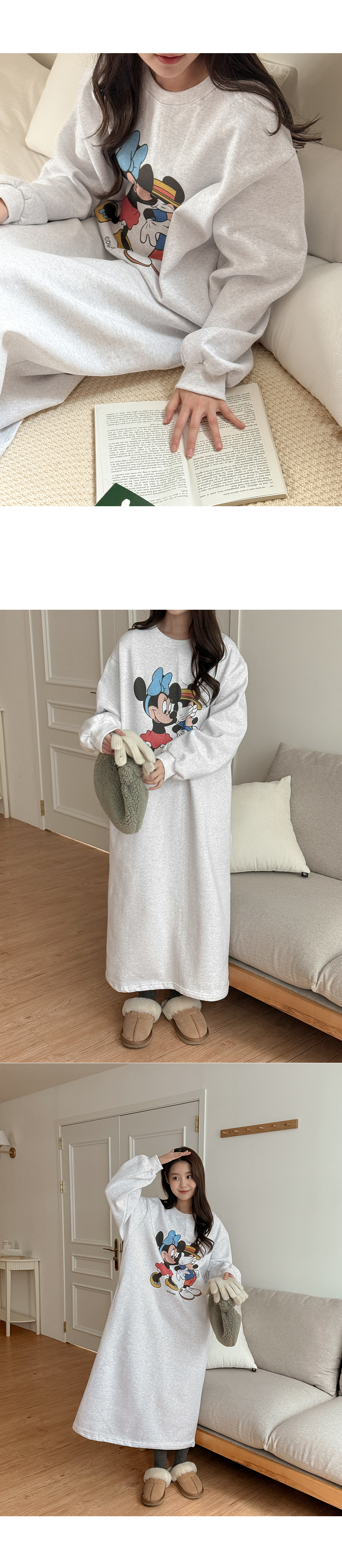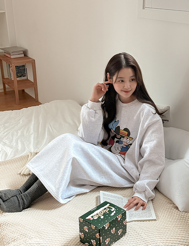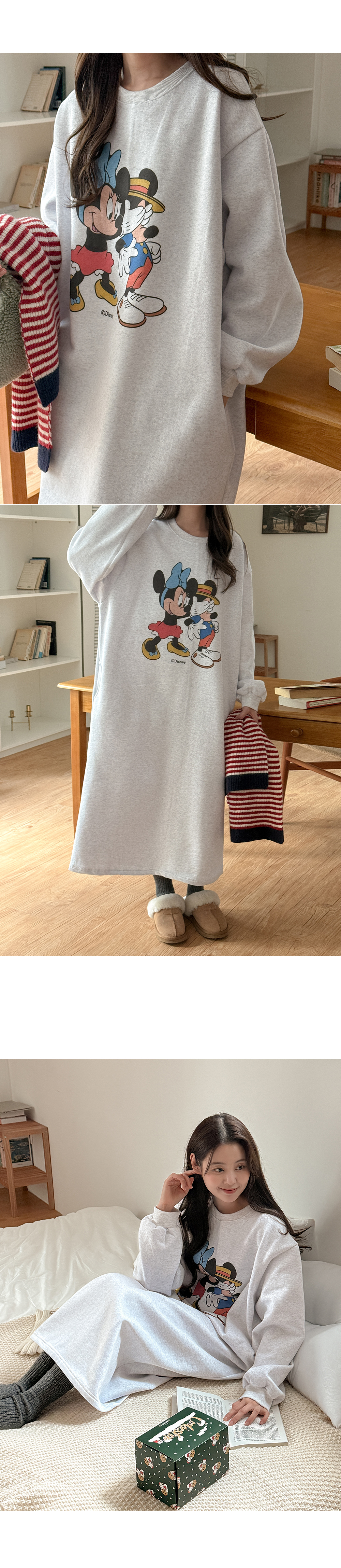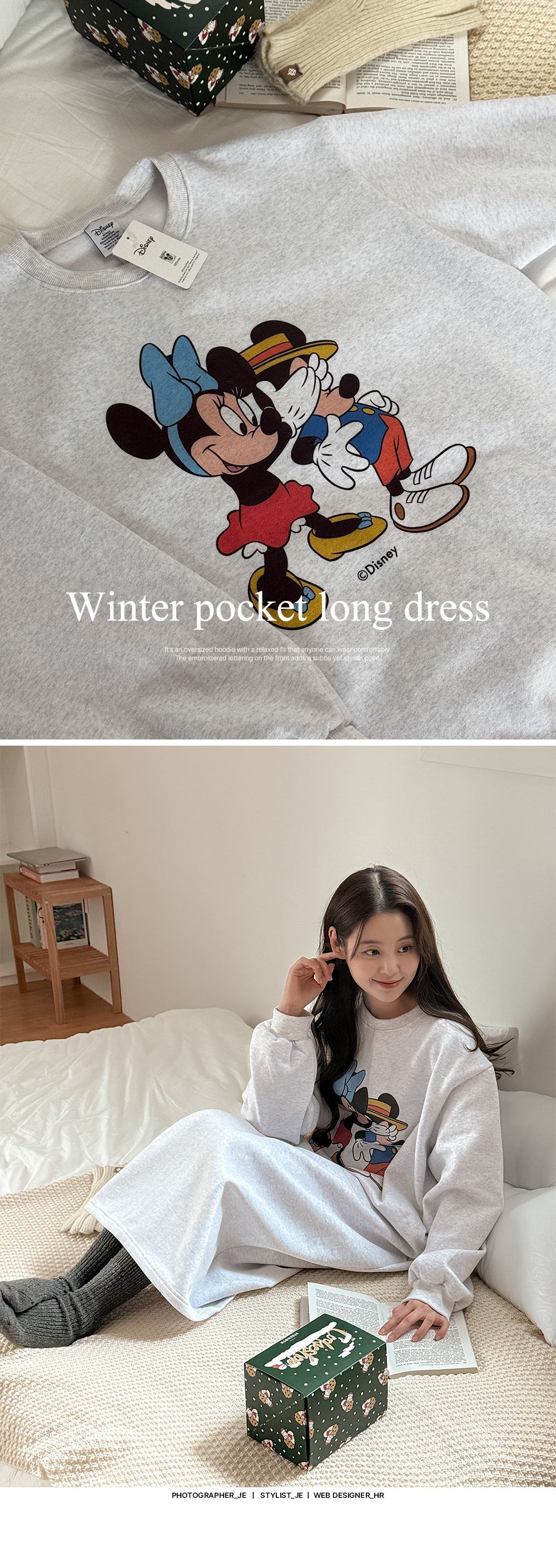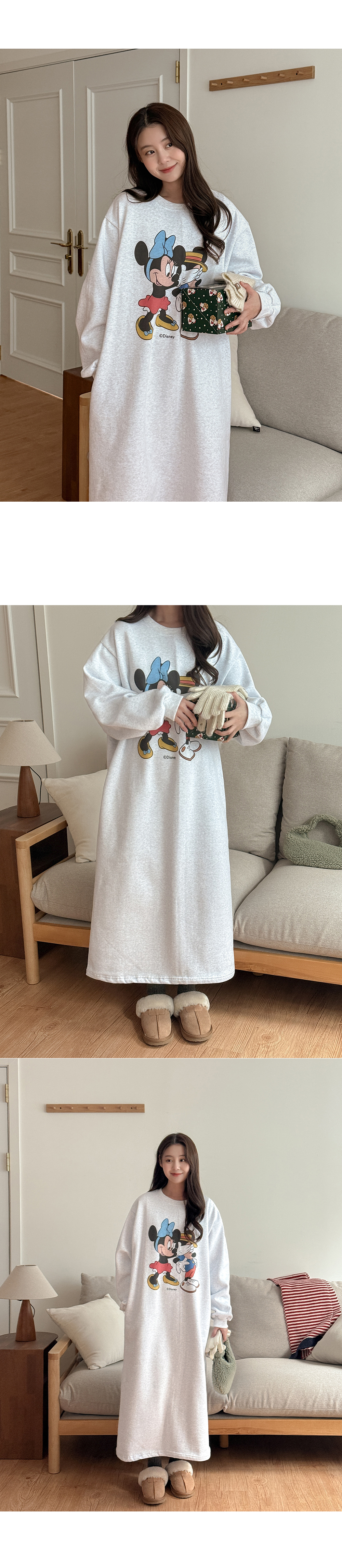 [迪士尼正品] 류셀 윈터 印花 加絨 포켓 長款 洋裝 85773